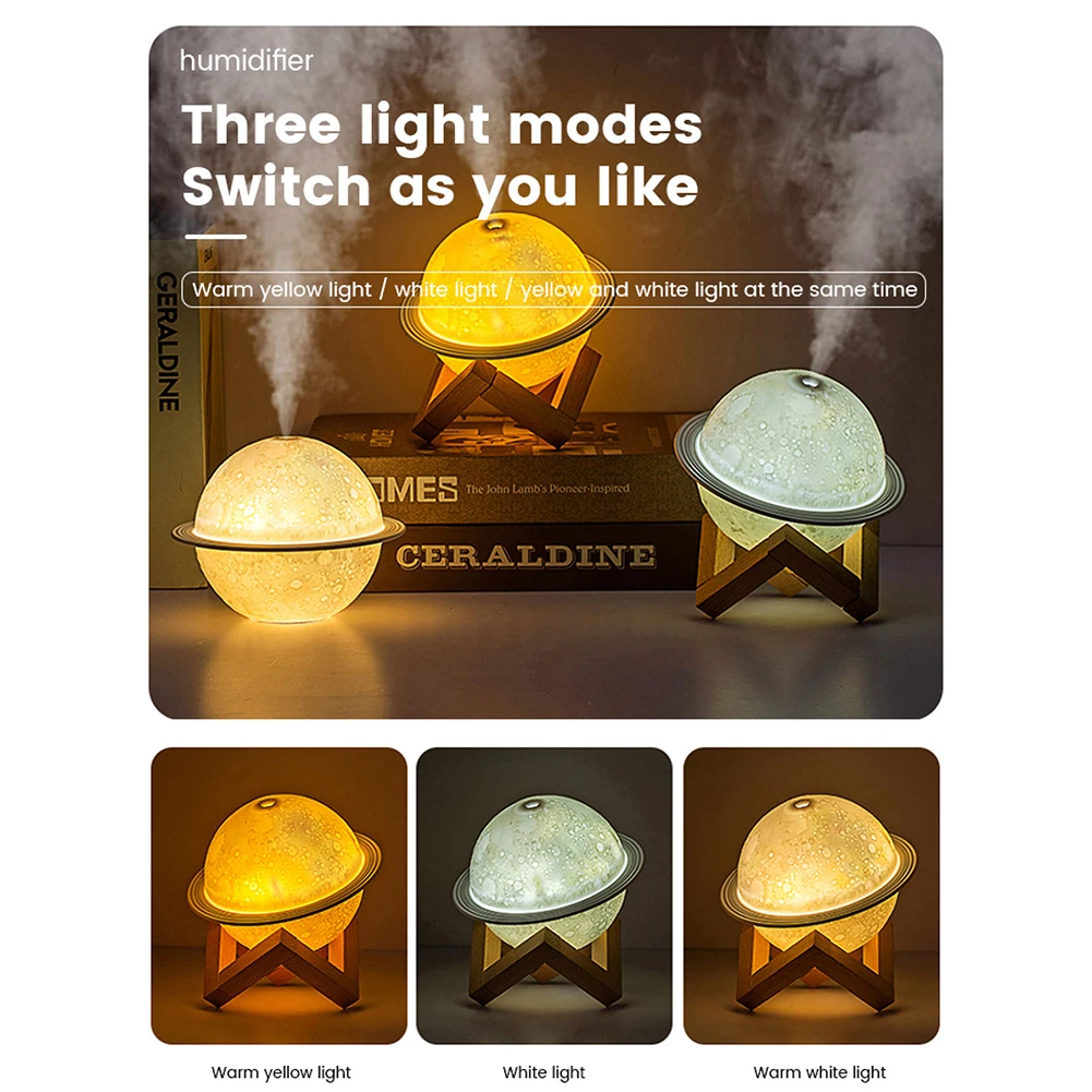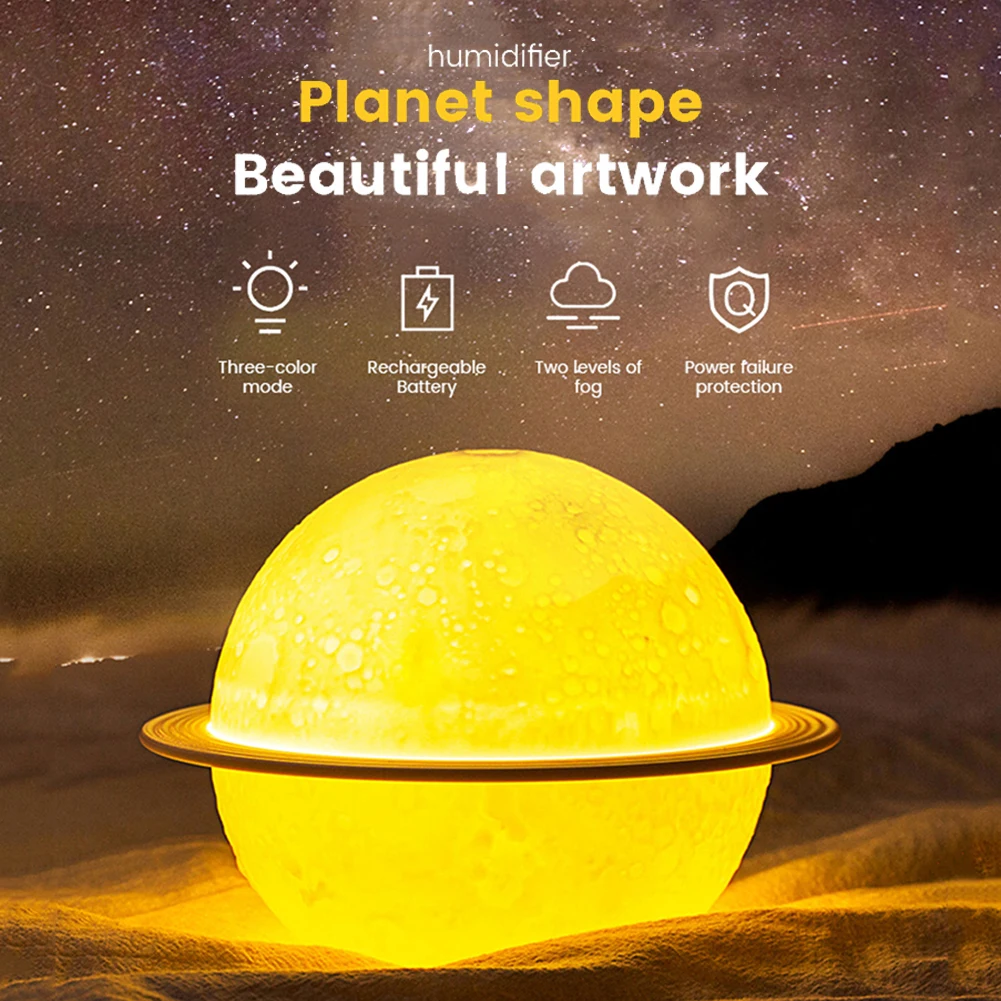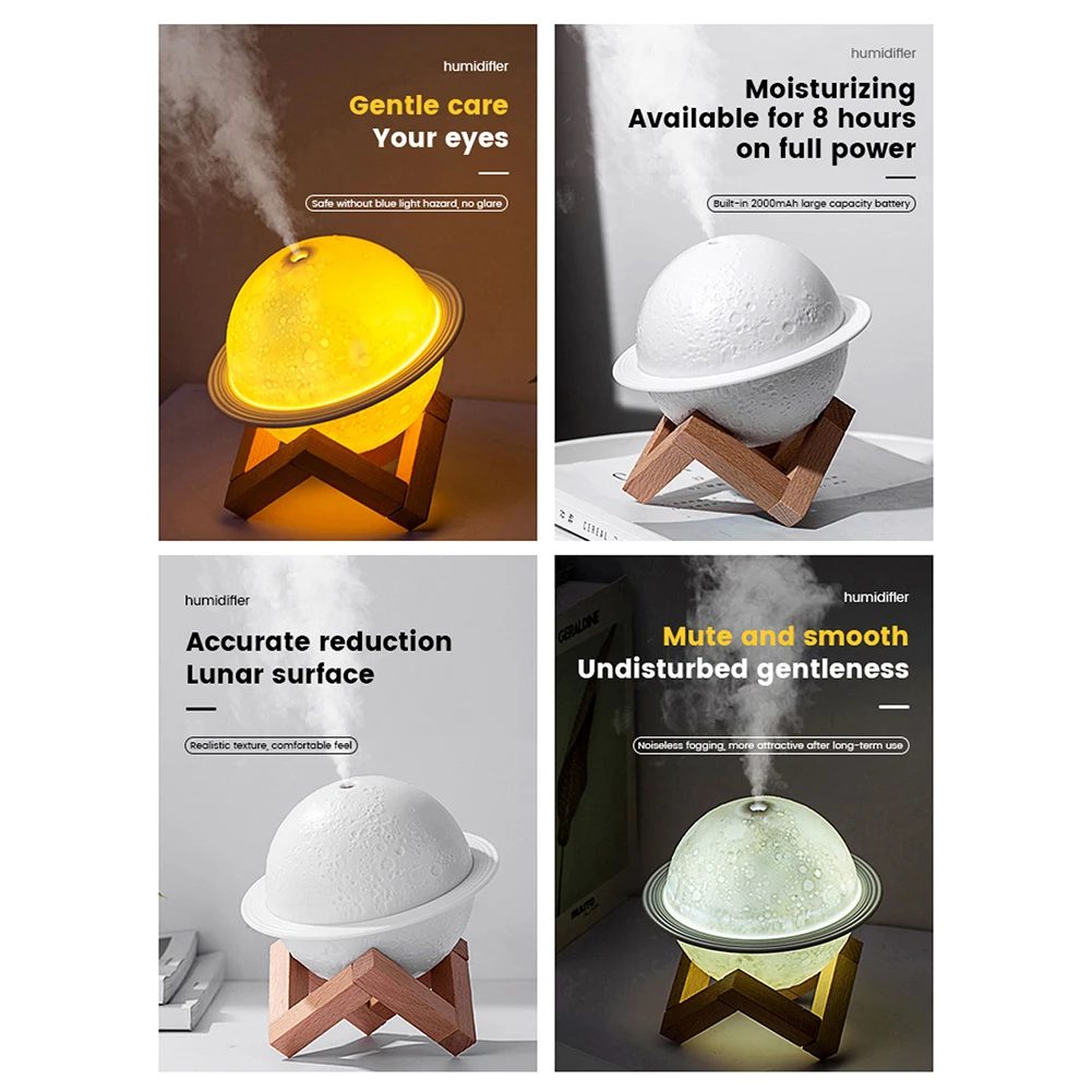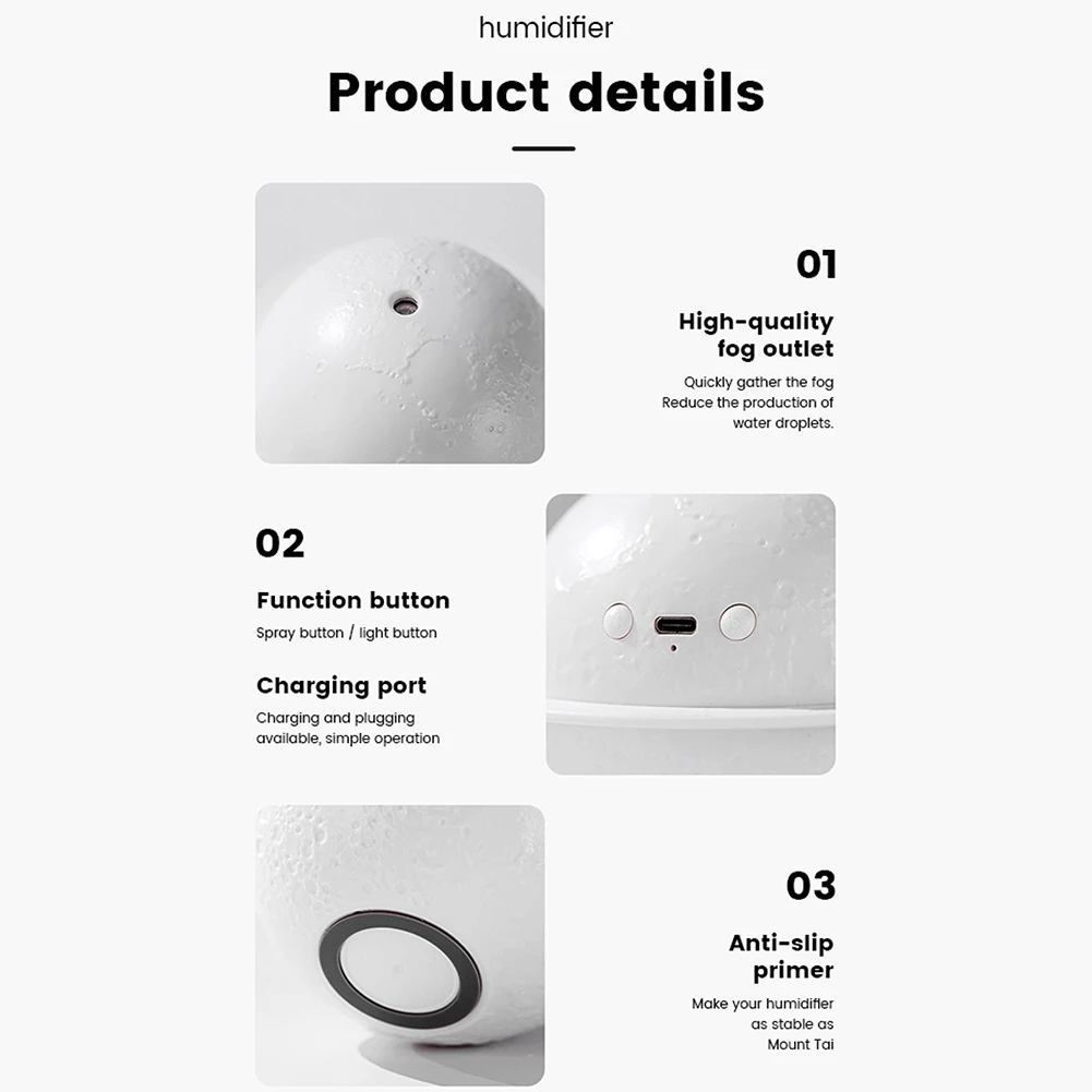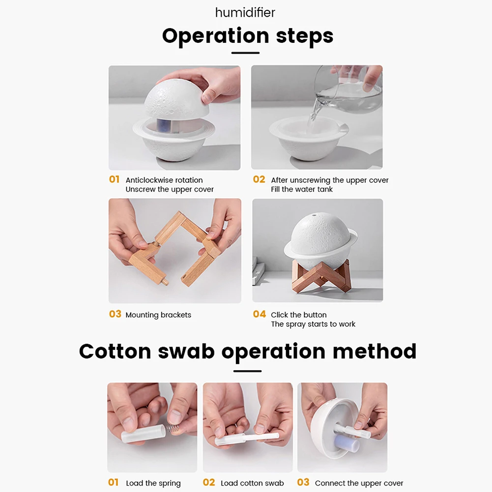 * 5. Легко использовать-Отвинтите луну, чтобы пополнить воду, Прикрепите подставку и положите Луну на нее, а затем начните. С двумя переключателями для управления Ночной светильник и увлажнитель воздуха отдельно.
