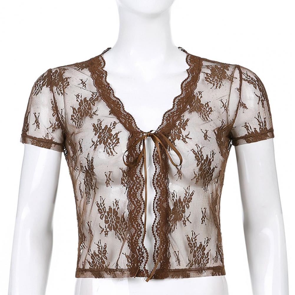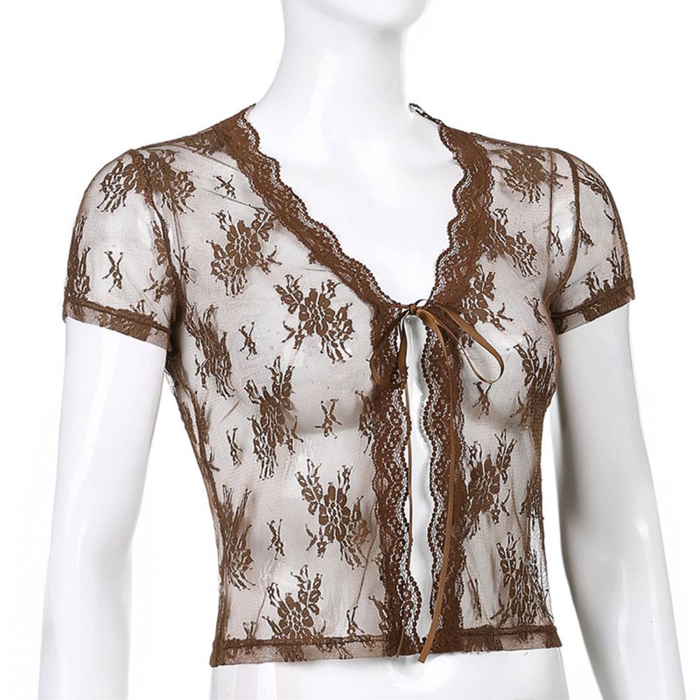 Топы с v-образным вырезом из спандекса, кружевные топы для отдыха