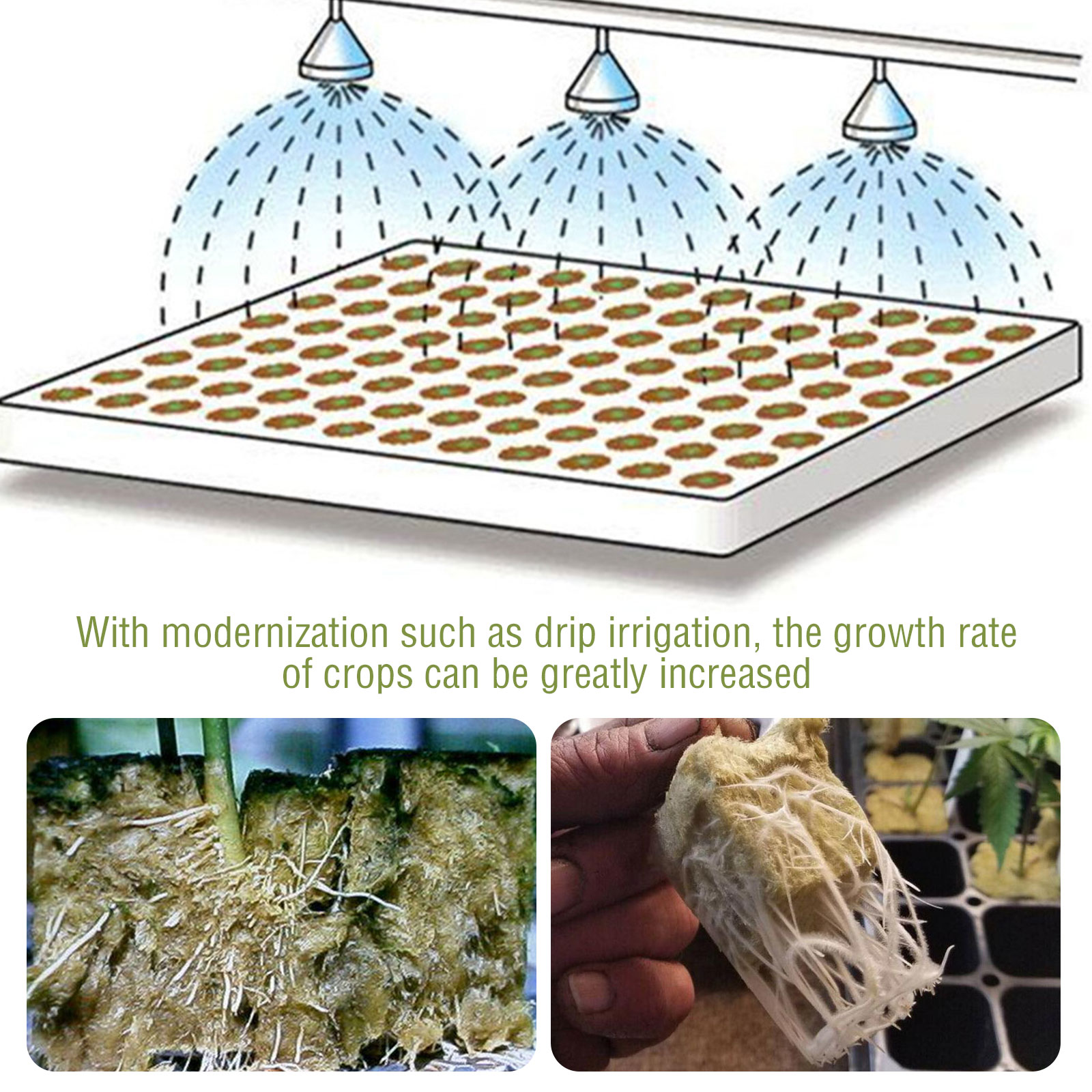 Его можно использовать в сочетании с системой капельного орошения, чтобы значительно снизить стоимость производства, значительно увеличивая скорость роста, эффективность производства и качество растений.