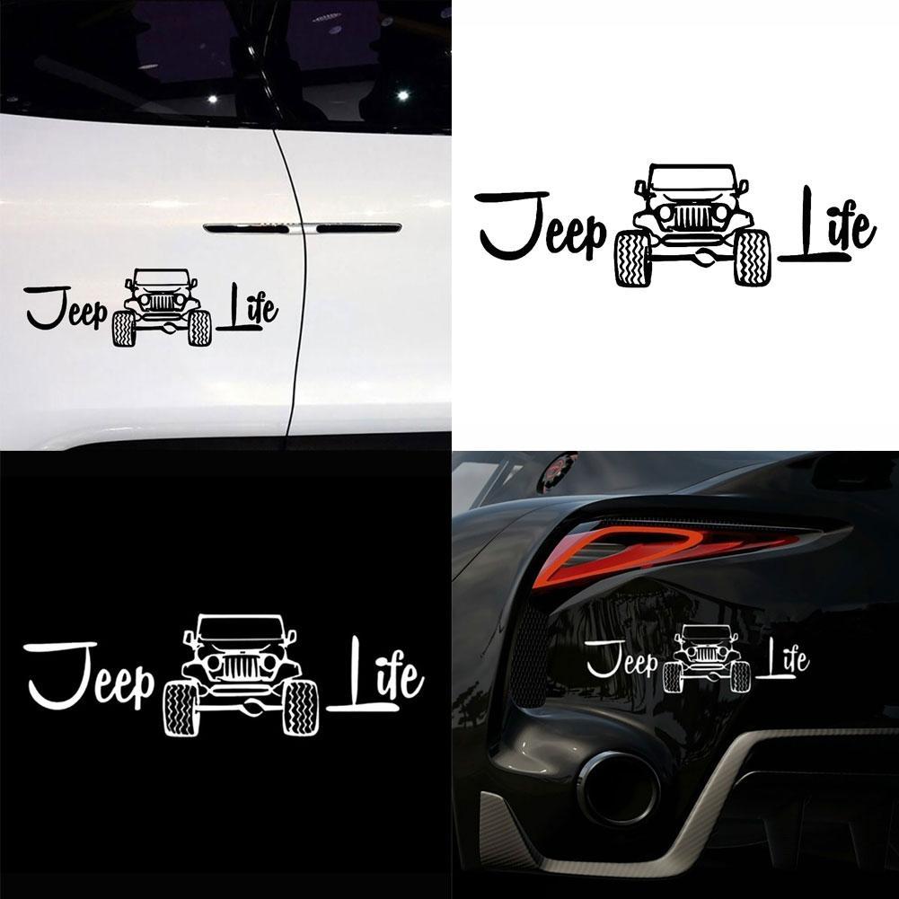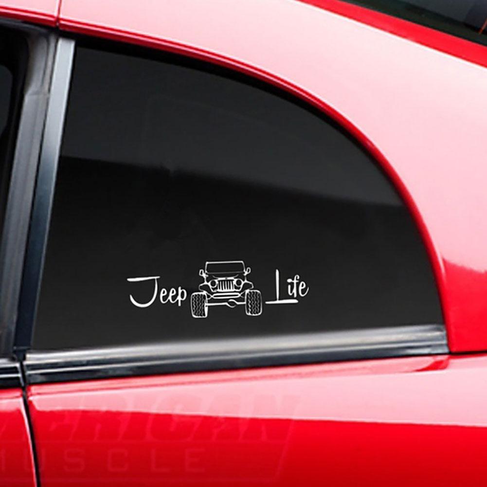 Наклейка с надписью «Jeep Life» и изображением автомобиля, стильная и стильная.