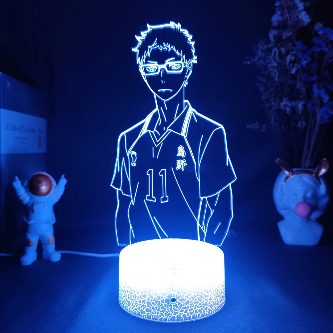 This is a beautiful art light. You can see 3D sculpture in the darkness. But it is actually a two-dimensional illusion made by acrylic. It is really a great gift for children who are fond of Tsukishima Kei. Light panel material: high transparency optical acrylic Lamp Base: 87x87x42mm, ABS Power supply: 5V USB interface / 3* AA batteries(not included)