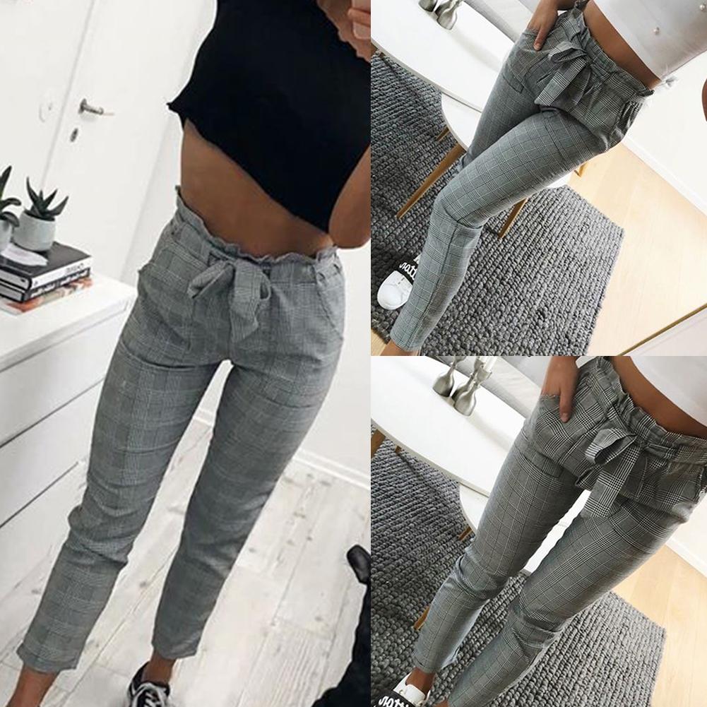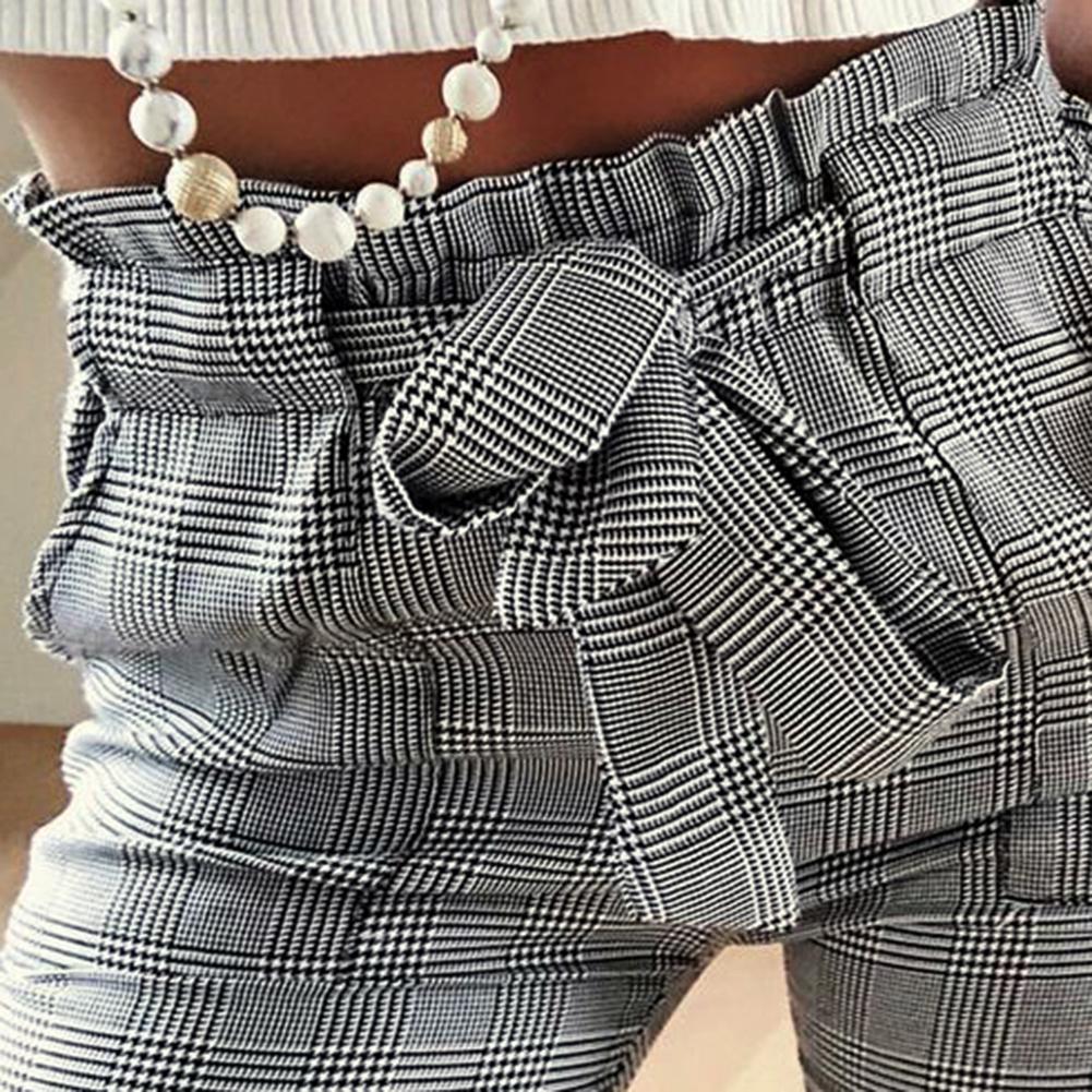 Женские Модные клетчатые плиссированные узкие брюки-карандаш с высокой талией и поясом Daliy Life
