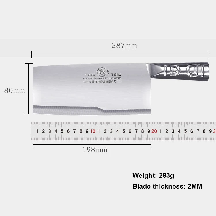 Материал: Кованая Высокоуглеродистая сталь Длина ножа: 287 мм Длина лезвия: 198 мм Ширина лезвия: 80 мм Толщина: 1,5 мм Вес: 0,283 кг