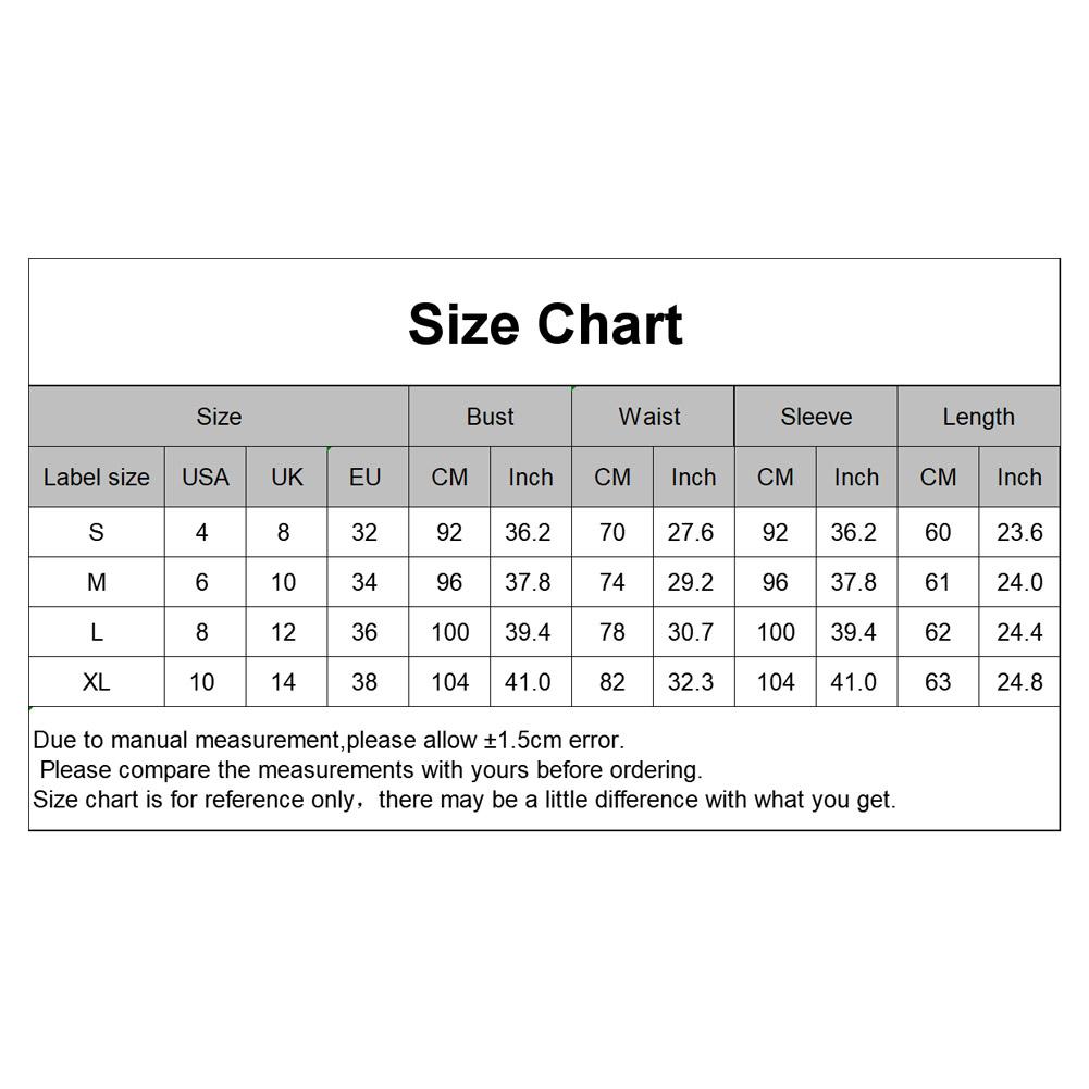 [Наш Размер S] Обхват груди: 92 см/36,2 дюйма, обхват талии: 70 см/27,6 дюйма, длина рукава: 92 см/36,2 дюйма, длина: 60 см/23,6 дюйма (прибл.)
