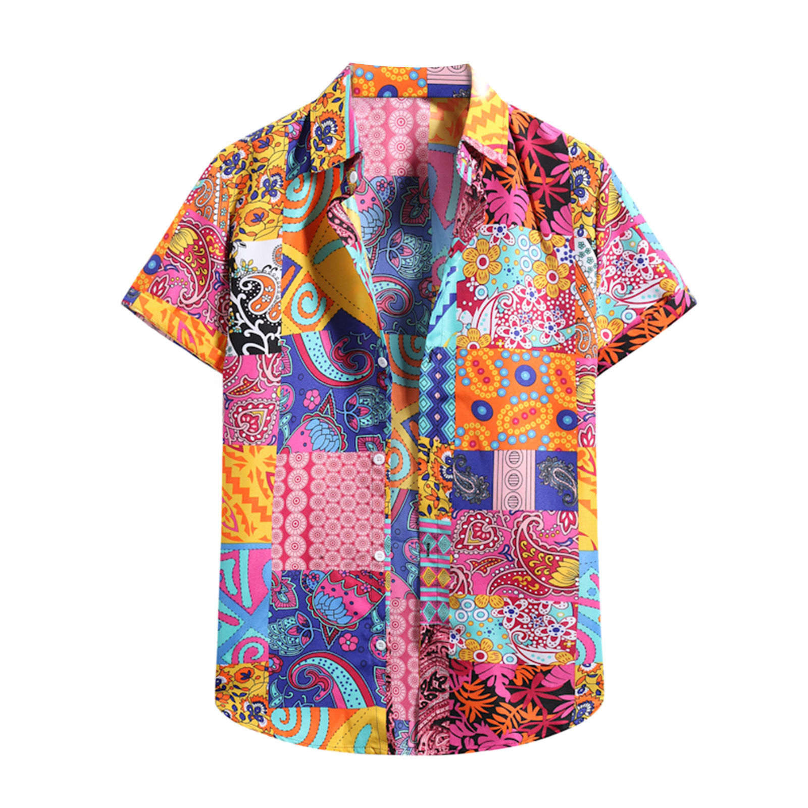 Кардиган с коротким рукавом мужская Гавайская пляжная рубашка с цветами, Мужская водолазка