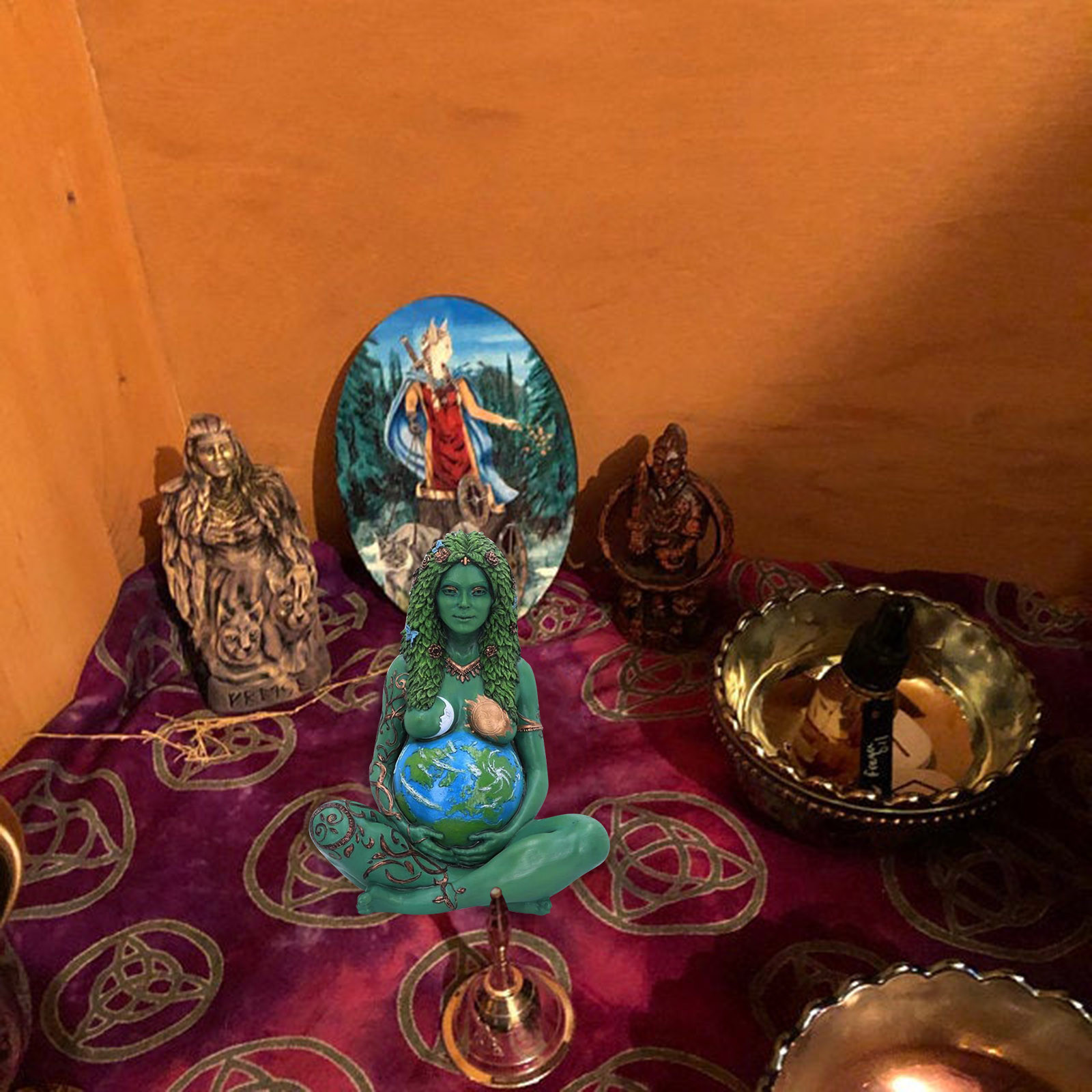 Эта статуя искусства Матери-Земли отлита в тончайшую смолу, прежде чем быть умело закончена в бронзе и замысловато расписана вручную.