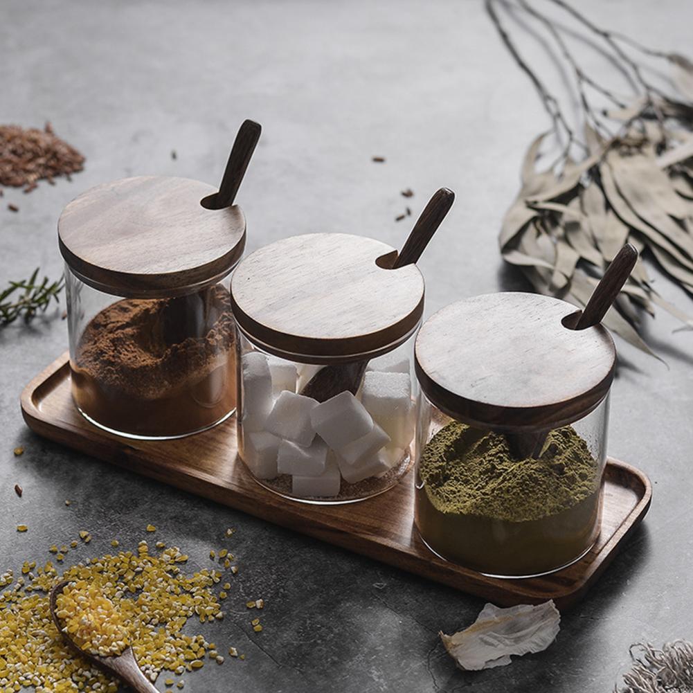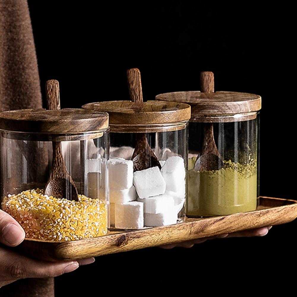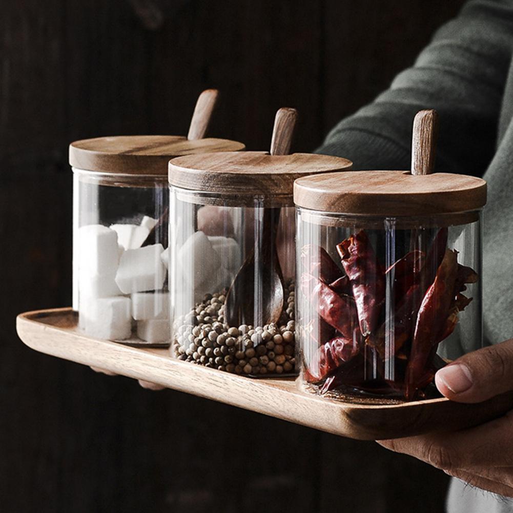Молоток из стекла, бамбука и дерева, туалетный ящик, набор для бытовой кухни, соляная банка, бутылка для приправ, контейнер с ложкой