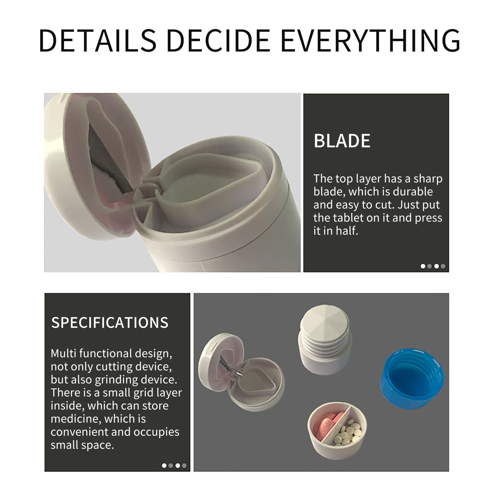Резака поддерживается уникальная Встроенная пружина. И прозрачная защита лезвия. Защитный чехол защищает Лезвие и фиксирует планшет на месте, блокируя сторону лезвия И блокирует планшет во время резки. Безопаснее в использовании и легко Работает. Это лучший выбор для производства точных дозировок любого Фармацевтическая таблетка. Уникальный регулируемый дизайн канала Может полностью зафиксировать любой размер, чтобы осуществить простую и точную резку. И Позволяет использовать несколько таблеток, которые могут находиться в одно и то же время, и может быть с легкостью И равномерно разрезается. Лезвие является наиболее важной частью Разделитель таблеток. Лысая головка изготовлена из высококачественной нержавеющей стали, Прочный и долговечный, устойчивый к ржавчине и коррозии. Простой и безопасный резак. Она подходит Для любого пользователя, независимо от того, не можете ли вы проглотить большие дозы таблеток Время, или вы должны принять их индивидуально в равномерных дозах. В Прозрачная крышка очень безопасна для пользователей. Режущее лезвие изготовлено из Медицинская нержавеющая сталь, острый и не ржавеет. Встроенная пружинная поддержка более Удобно и безопаснее в использовании. Вырежьте 6-10 гранул одновременно в соответствии с Размер. Подходит для большинства регулируемых ходов от маленьких до больших, Можно полностью зафиксировать любой размер для достижения простой и точной Резка.Продукты включают в себя
