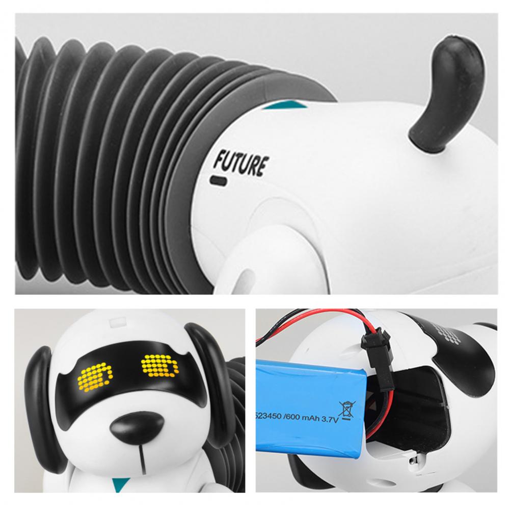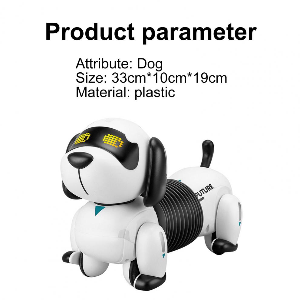 Молодой владелец может свободно редактировать кнопки дистанционного управления, чтобы управлять таксой для отображения соответствующего содержимого. Таксы будут растягиваться и сокращать свои тела. Может выполнять 50 команд движения программирования. Нажмите на сенсорную кнопку, и вы поете песню после прикосновения к своему рту. После нажатия кнопки «Далее» такса будет следовать источнику сигнала, отправленному пультом дистанционного управления для перемещения.