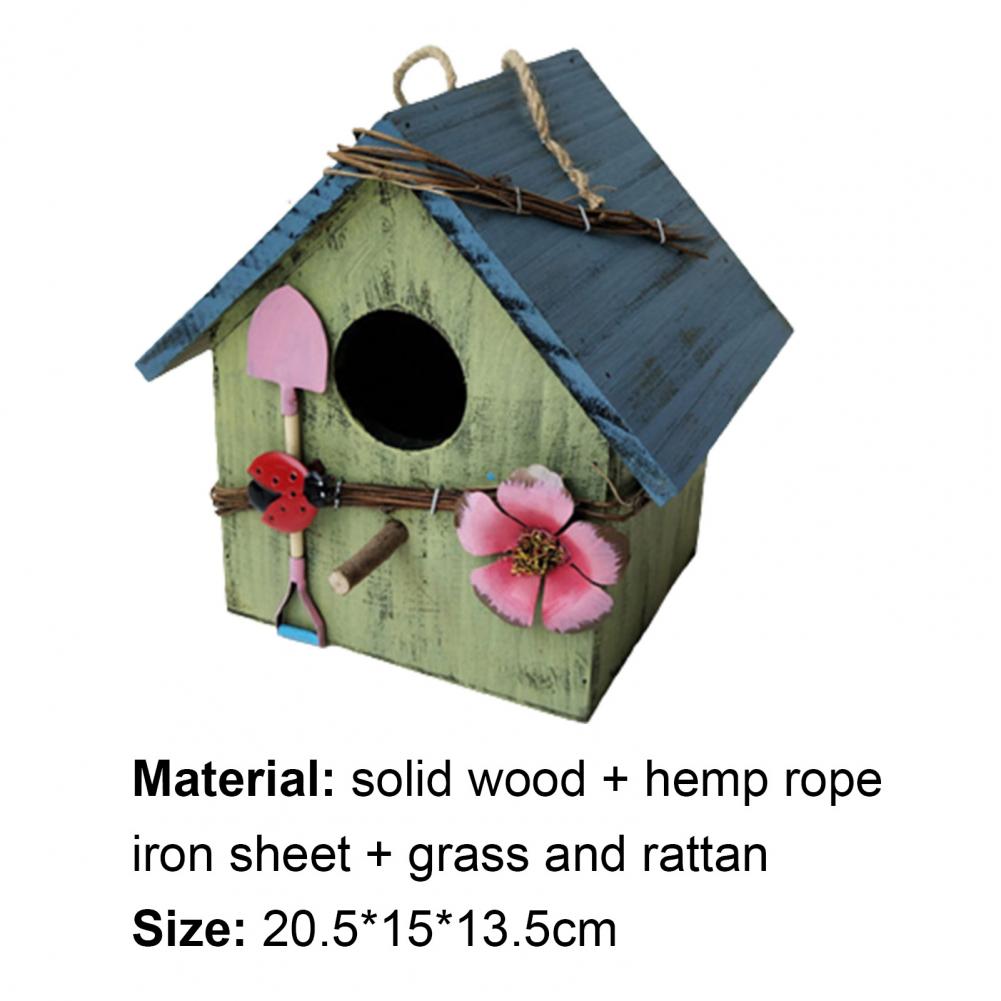 Разработан из твердой древесины, пеньковой веревки, железа и травы ротанга материалов, Птичий дом не легко деформируется.
