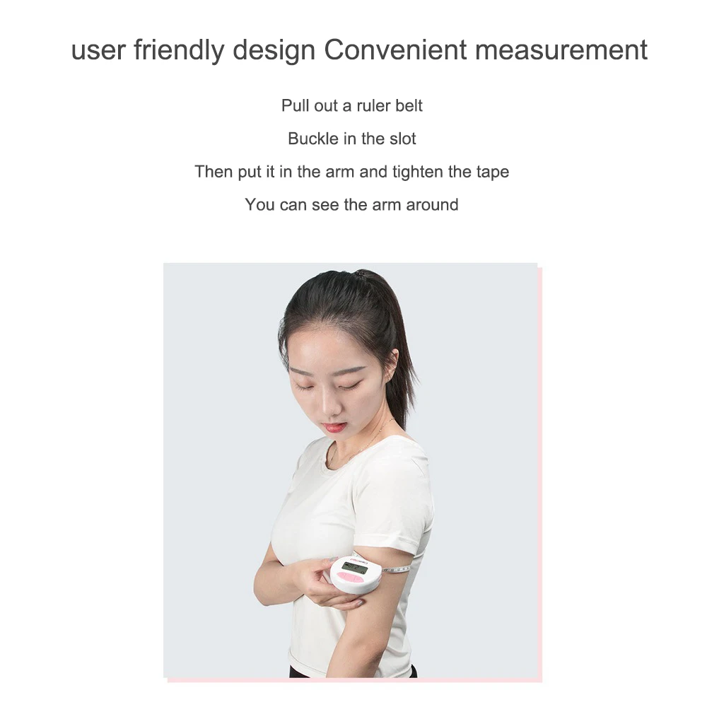 1. Светодиодный дисплей: большой и четкий светодиодный цифровой дисплей, легко читается и сравнивается с датами истории. 2. Запись даты: Он может хранить 9 групп дат, даже если это 1 мм, он может напомнить вам о каждом изменении. Это отличный инструмент для отслеживания потери веса или роста мышц. 3. Противоскользящий дизайн: мощный магнит встроен в держатель ленты и фиксирующий штифт. Эта оригинальная конструкция с защитой от падения делает измерение более эффективным. 4. Два режима измерения: режим окружности и Линейный режим, подходит для бытовых товаров и ежедневного измерения работы. Легко и удобно. 5. Bluetooth: с помощью приложения система может быть подключена к мобильным телефонам для записи результатов каждого момента упражнений 6. Эргономичный дизайн: гуманизированный дизайн, специально разработанный корпус, форма дуги и изысканная Трехкнопочная раскладка, облегчающая управление одной рукой, удобная в обращении и удобная в хранении. Спецификация: