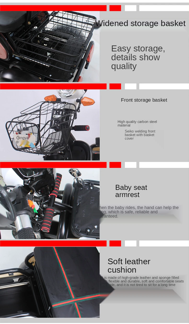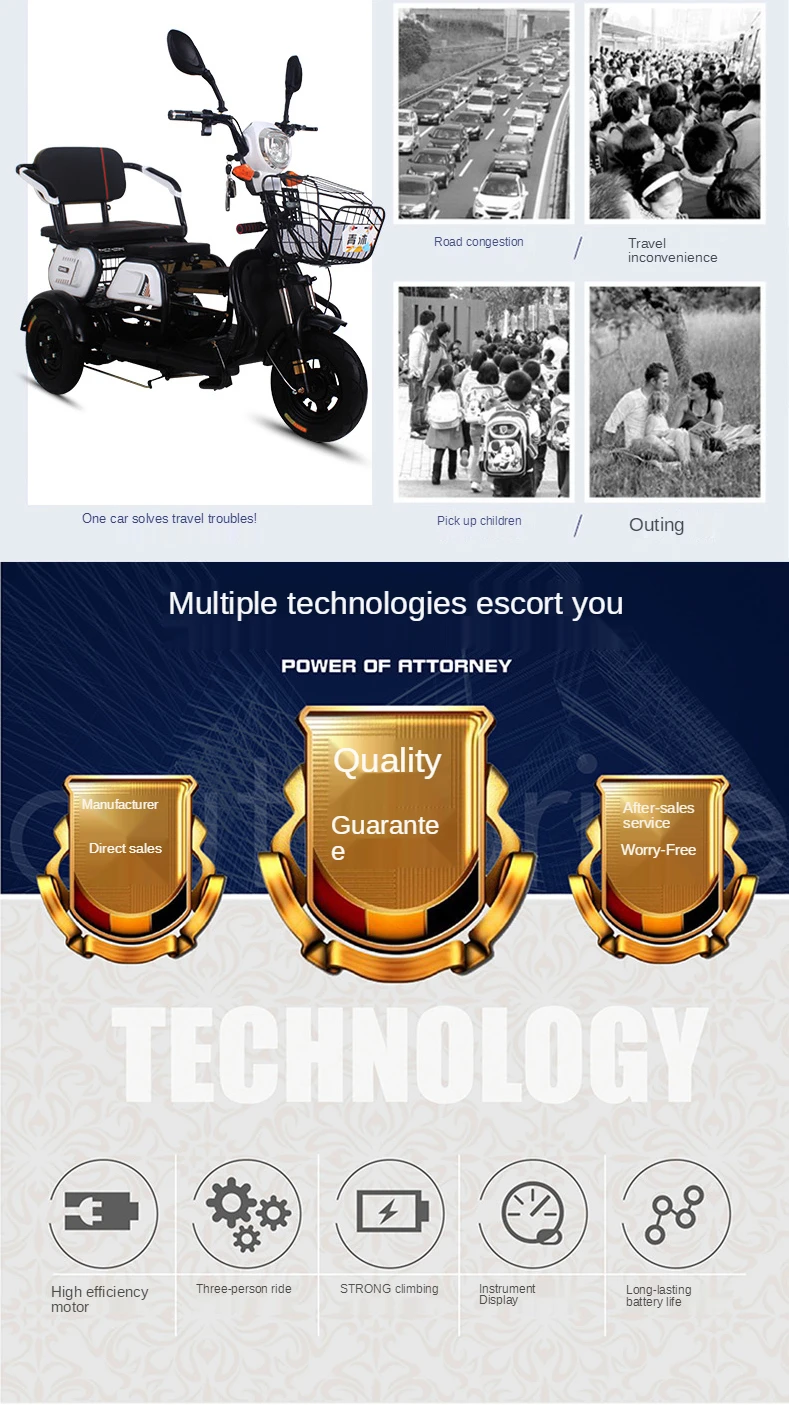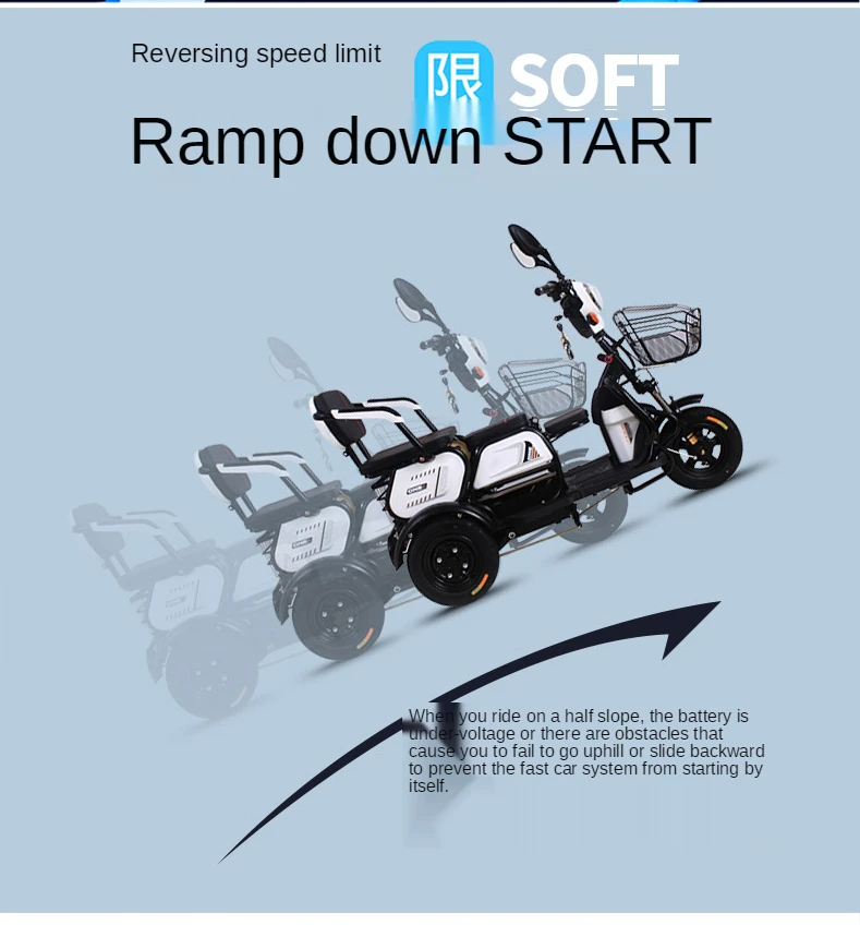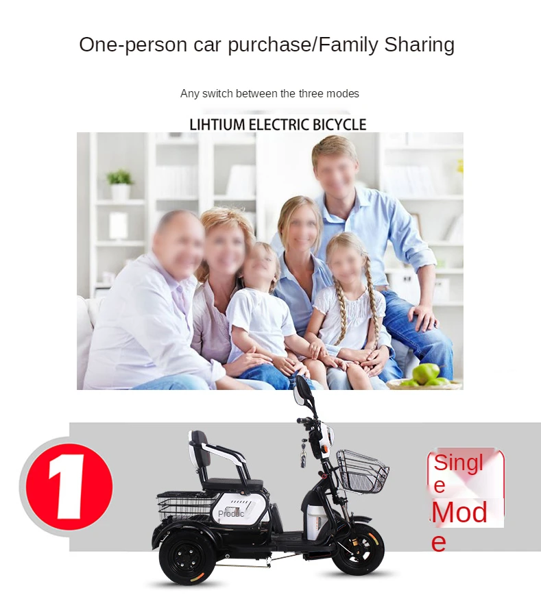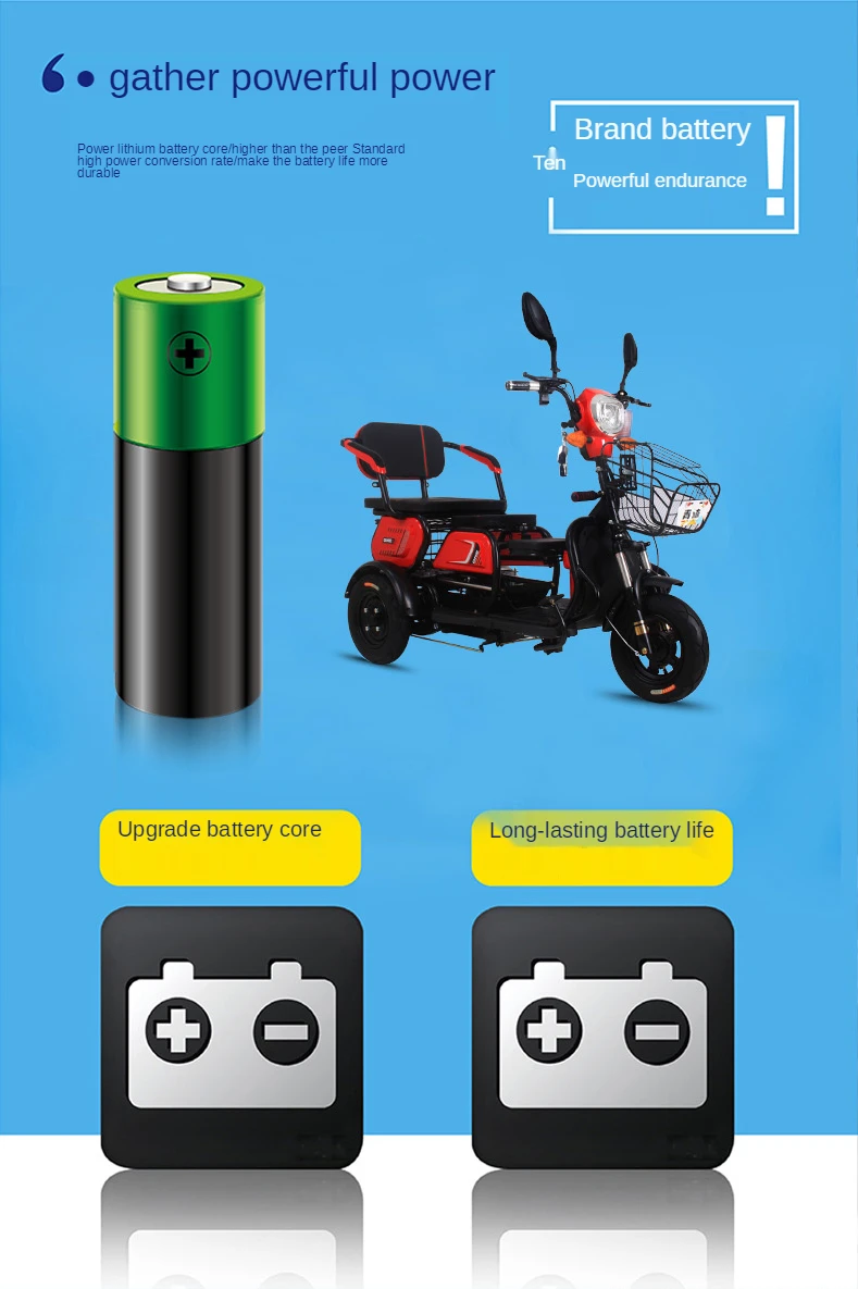Электрический трехколесный маленький бытовой скутер для детей, новый для пожилых людей, три человека, мощный аккумулятор для отдыха