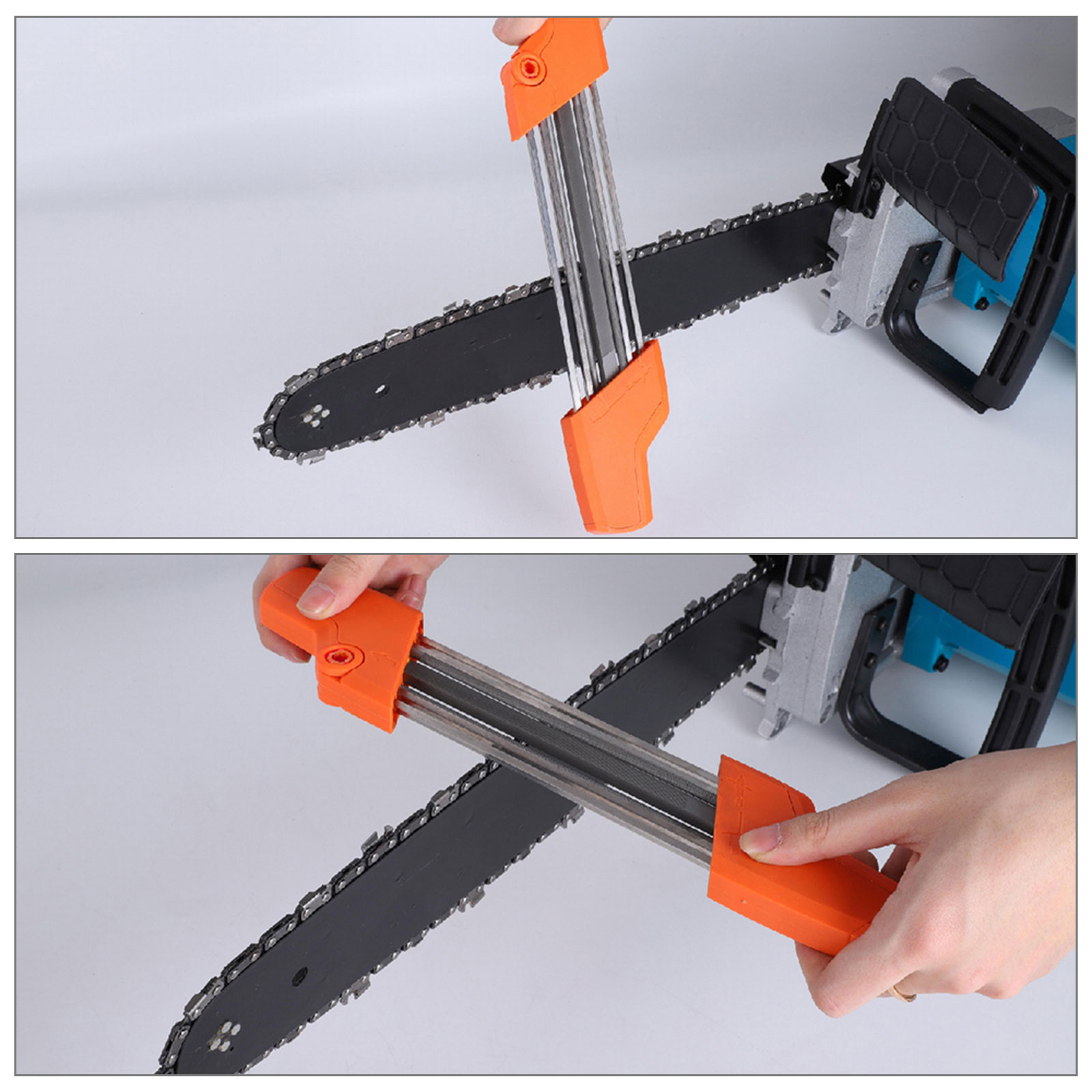 3. Обе стороны точильного камня разработаны с рулем для легкой работы, что позволяет пользователям работать непосредственно на бензопиле, не случайно травмируя пальцы.