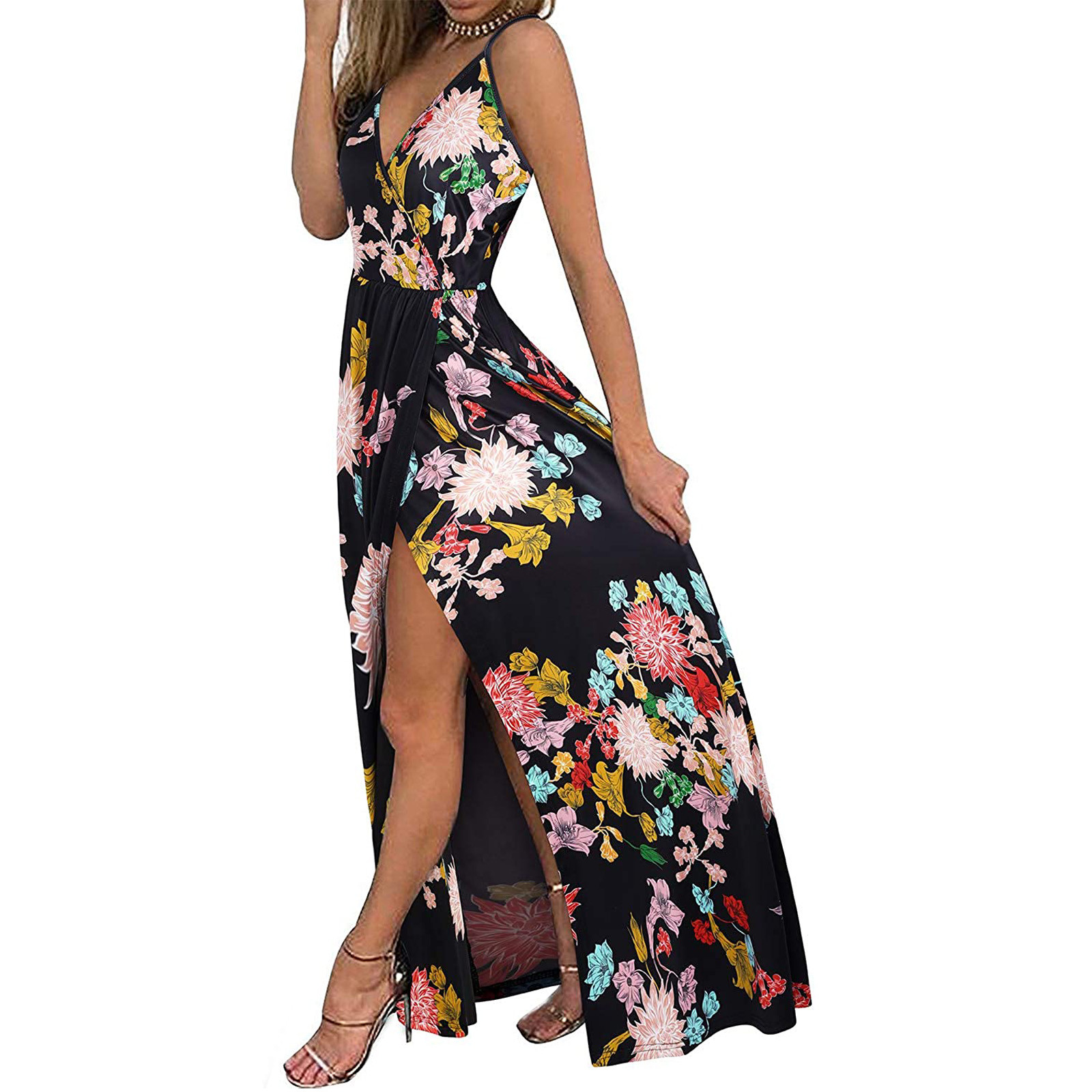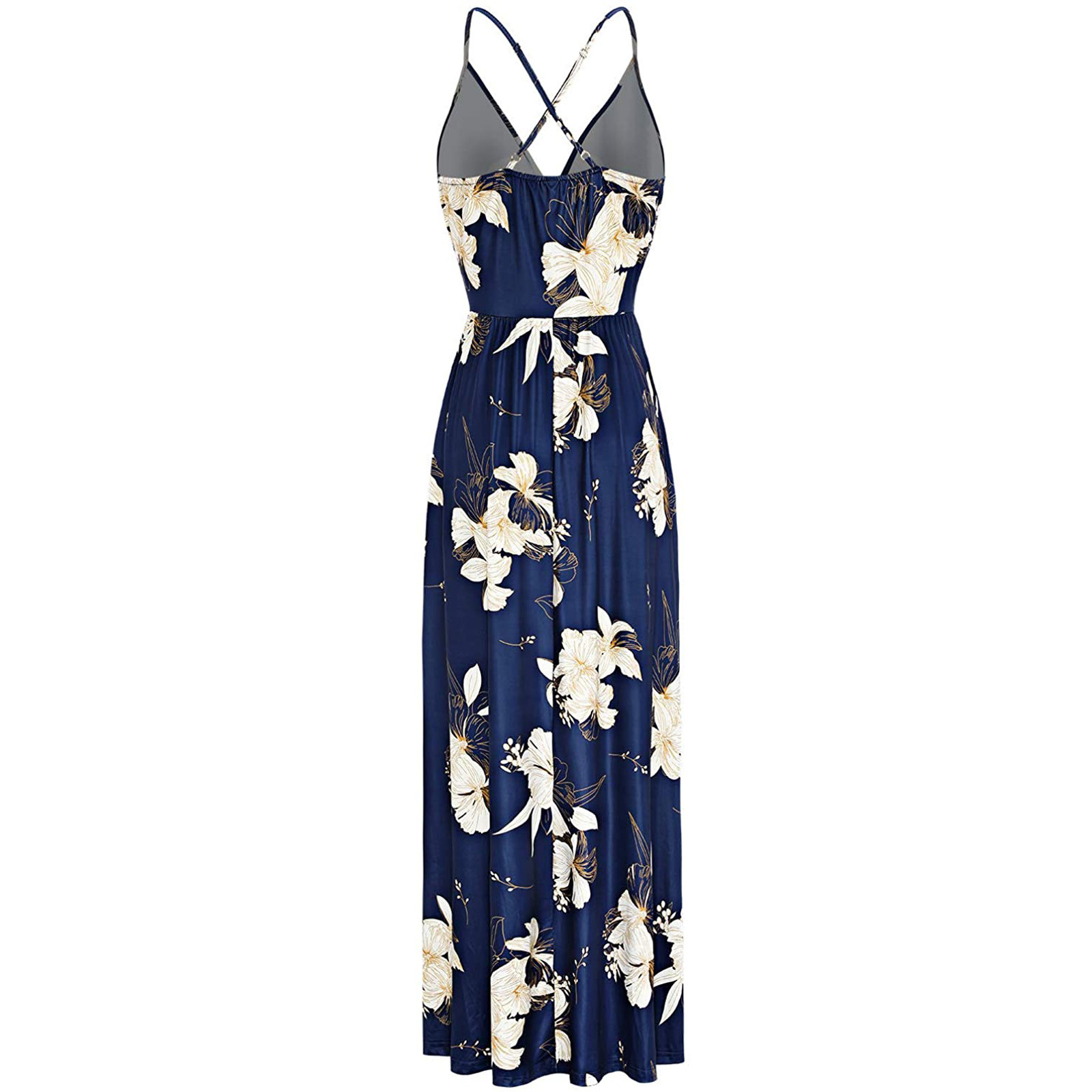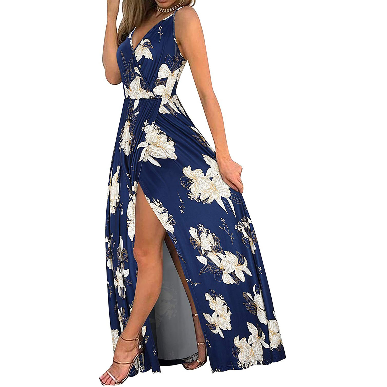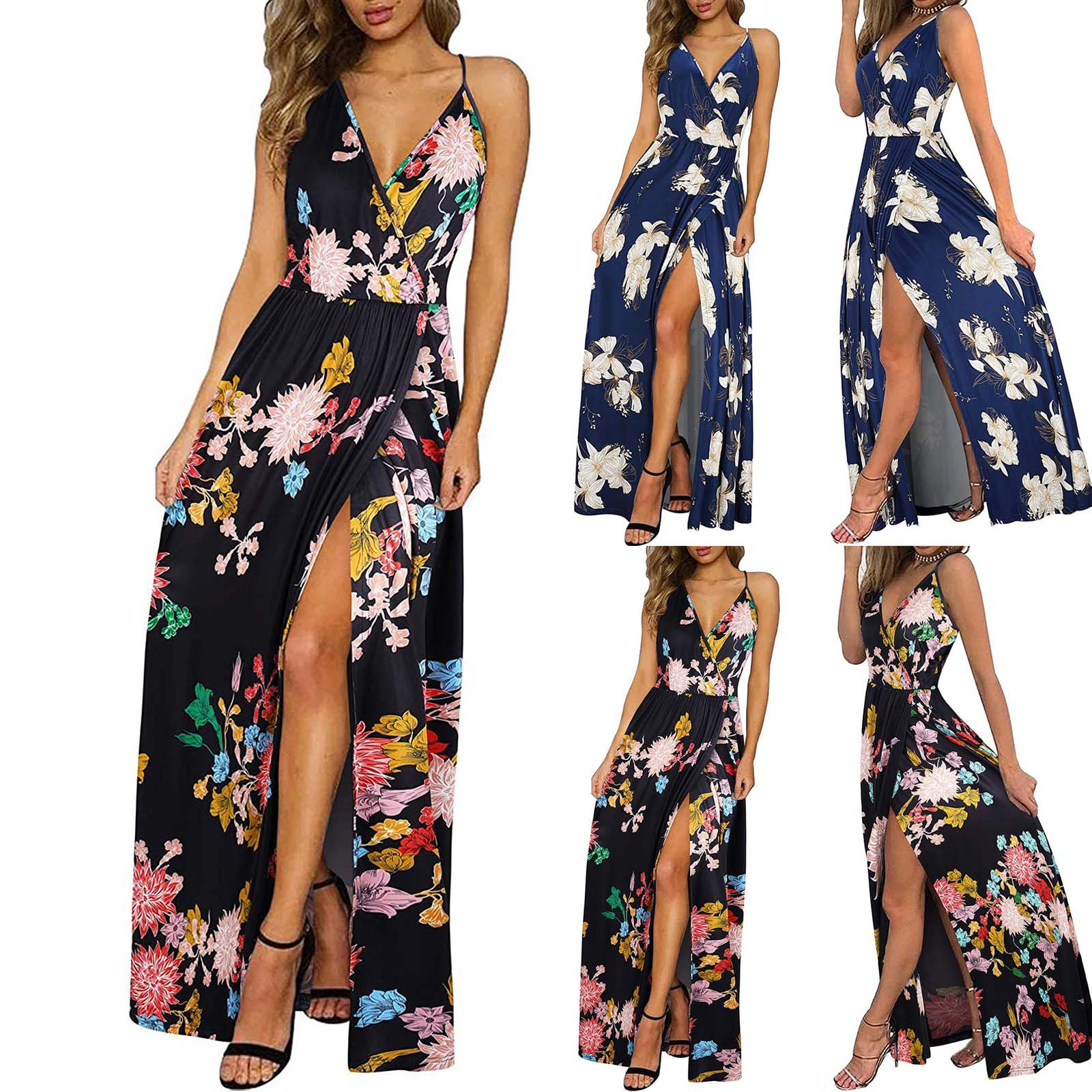 Женское модное платье с v-образным вырезом без рукавов с цветочным принтом, повседневное Длинное Платье Макси