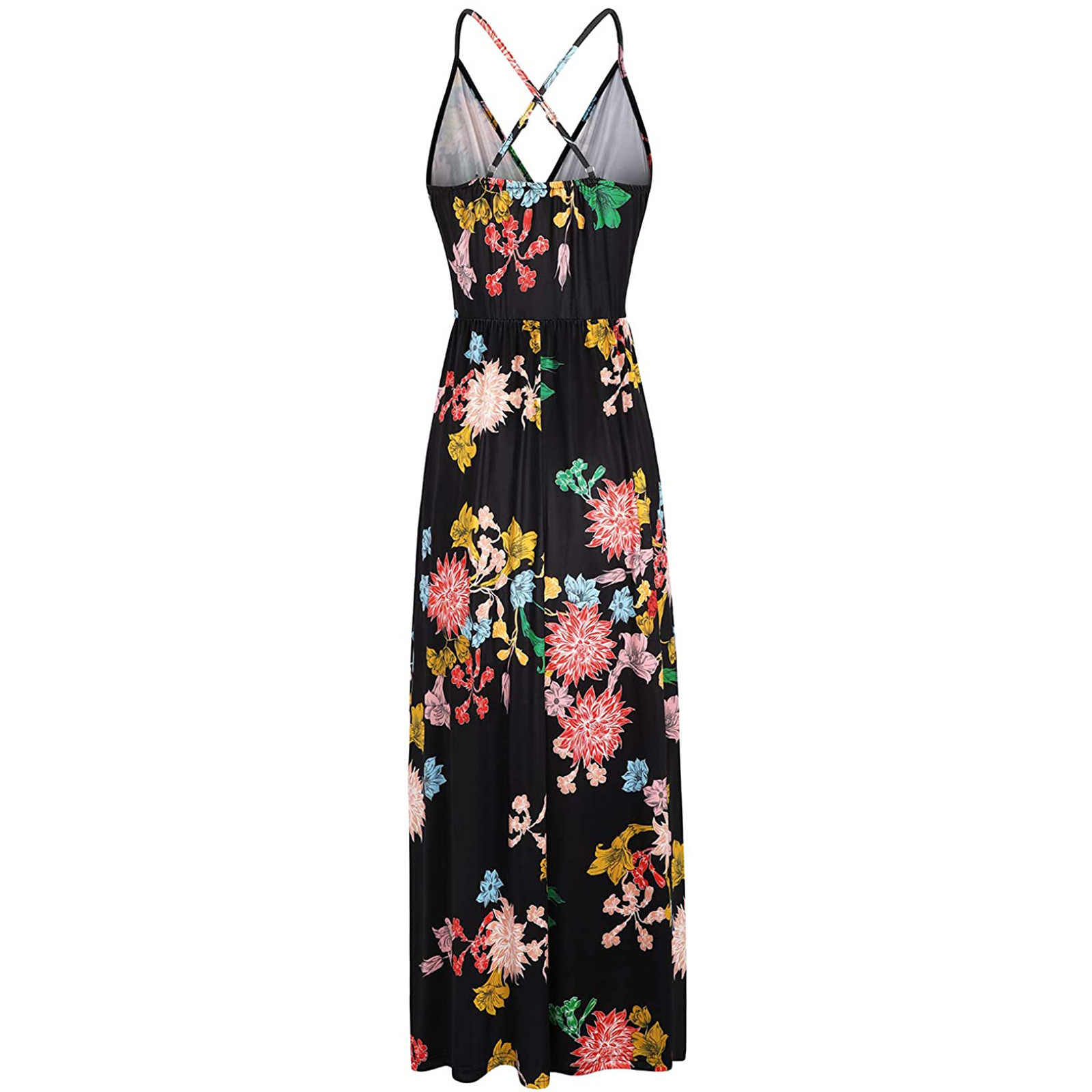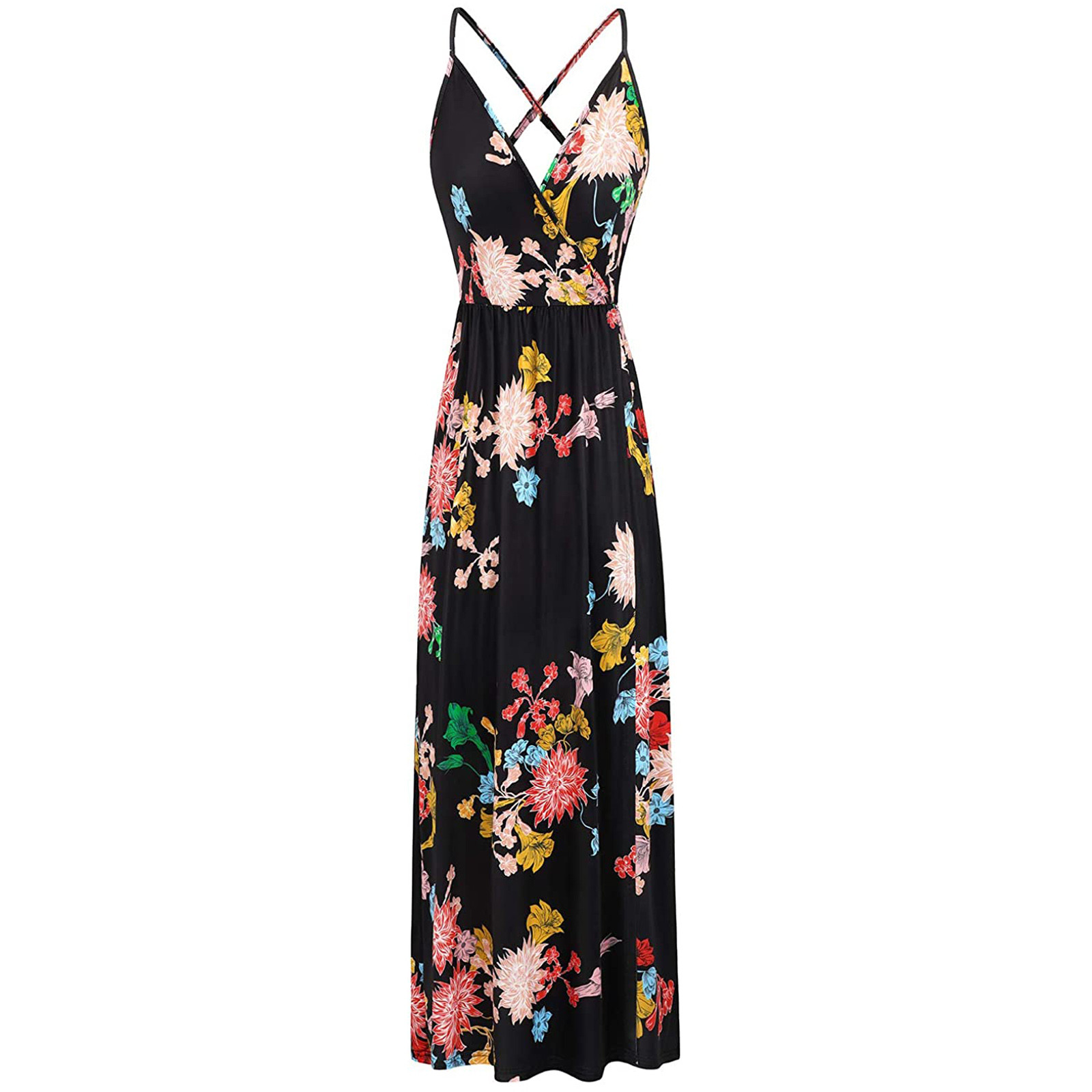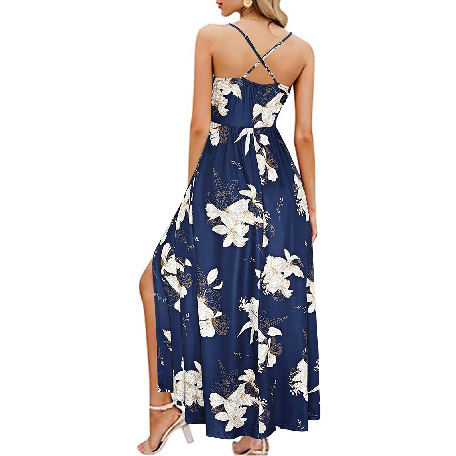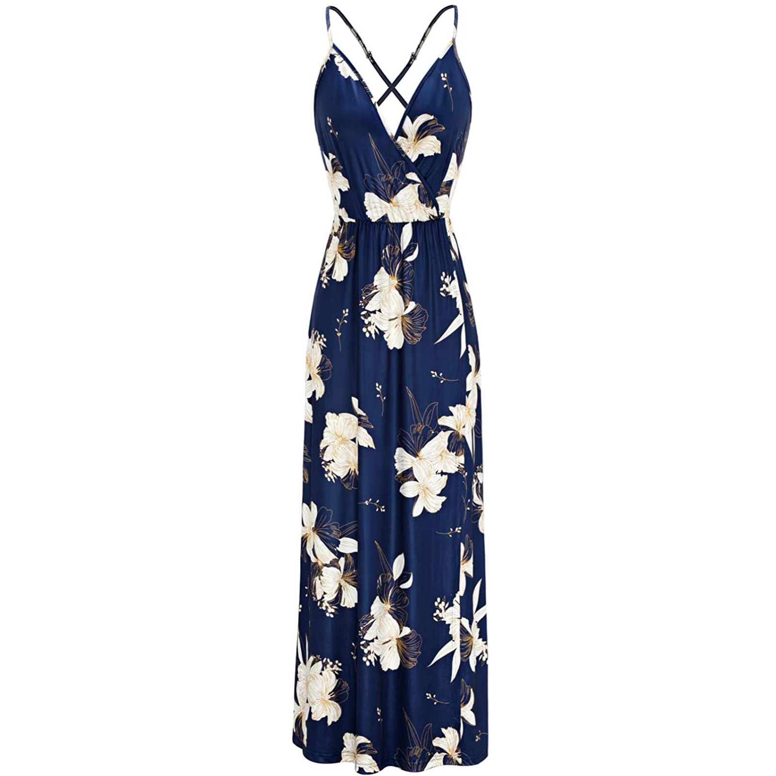Женское модное платье с v-образным вырезом без рукавов с цветочным принтом, повседневное Длинное Платье Макси