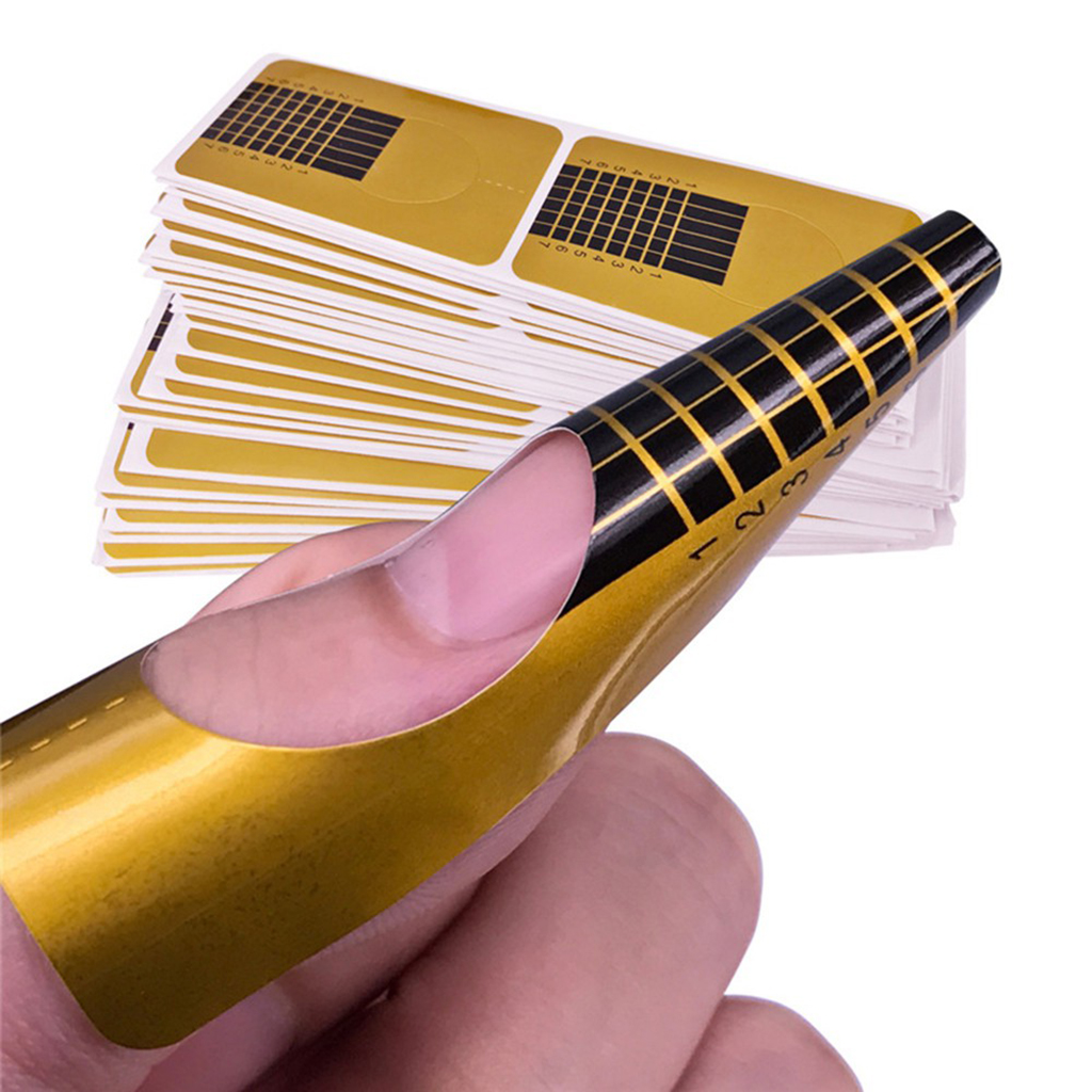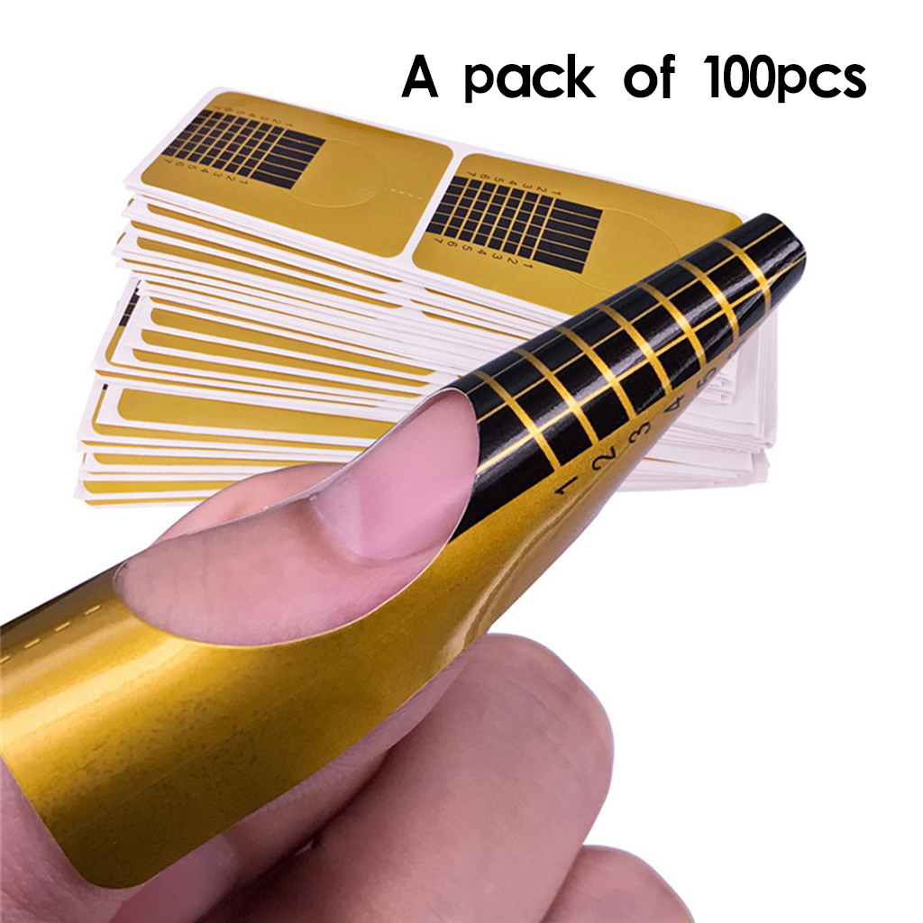 Всего 100 штук складных акриловых форм для ногтей, Открытое кольцо легко обернуть вокруг ваших ногтей и пальцев, регулируемый размер подходит для всех пальцев.