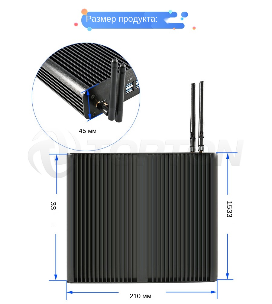 1 * Мини-ПК; 1 * Адаптер питания; 2 * антенны и т. д.