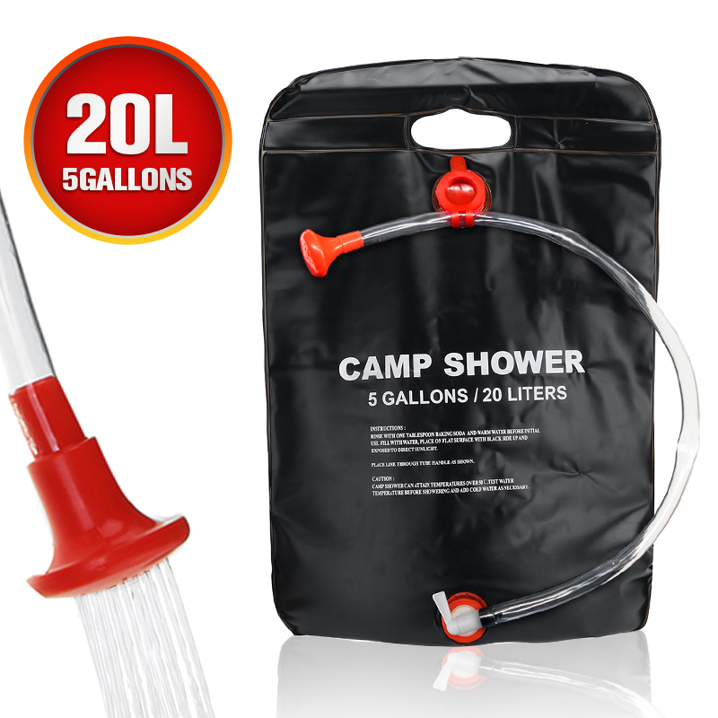 2. Этот походный душ на солнечной батарее имеет большой объем воды 5 галлонов/20 литров, достаточное количество воды для нескольких душ.
