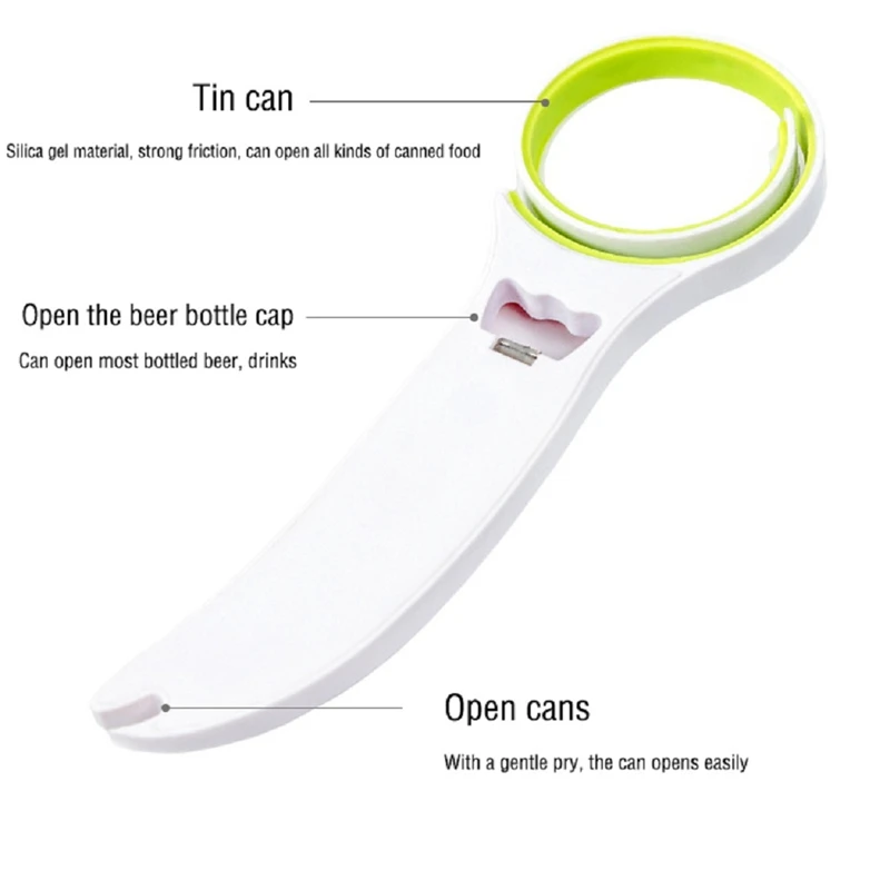 Красочная многофункциональная открывалка для бутылок, легко открыть крышку бутылки для напитков. Пить без усилий. Легко открыть консервы. С ним вам больше не придется кусать кепку. 3 в 1 функции, открытые банки, пивные бутылки, банки и так далее, удобно и просто в использовании. Характеристики: Цвет: красный, синий, зеленый Материал: АБС + эластомер Размеры: 20X6,5 см Посылка включает в себя: 1 х открывалка для бутылок Примечание: Возможна погрешность в 1–3 см, связанная с особенностями измерения вручную. Из-за различных дисплеев и различного светильник, изображение может не отражать фактический цвет товара.