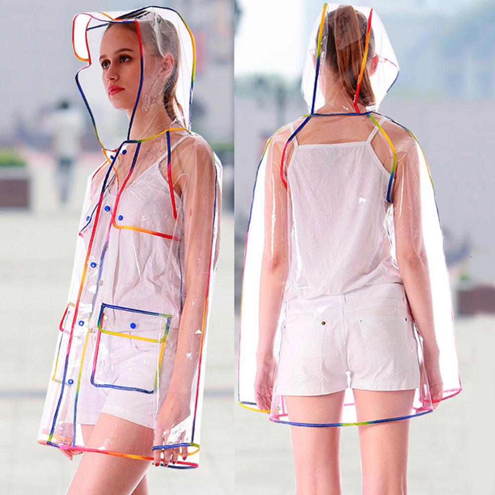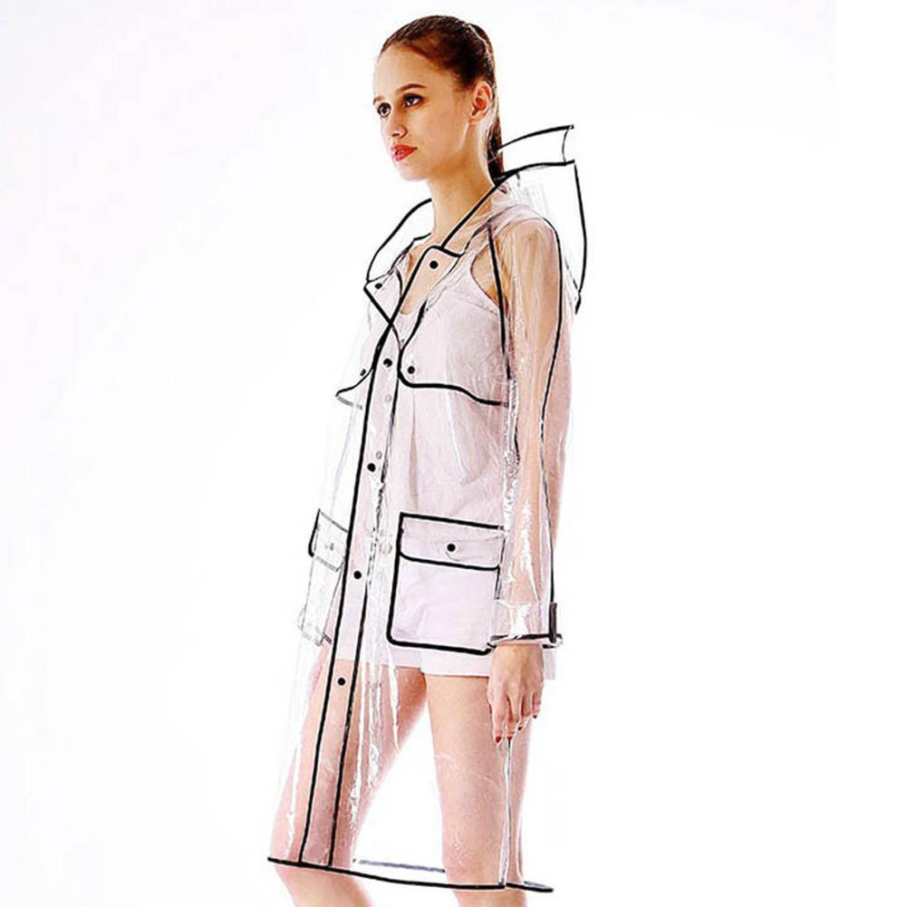 Adult Transparent Thicken Hooded Long Sleeve Waterproof Raincoat Poncho Rainwear