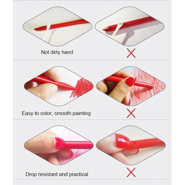 1. Уникальный опыт рисования: Наши треугольные мелки безопасны, нетоксичны, антипригарны, ударопрочные, водонепроницаемые и просты в захвате. Все виды ярких и ярких цветов могут удовлетворить воображение вашей маленькой возлюбленной и творческие потребности.
