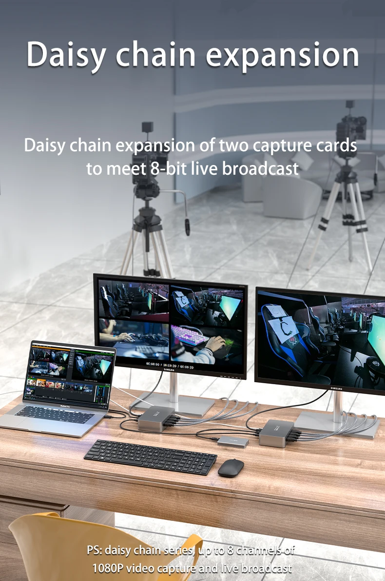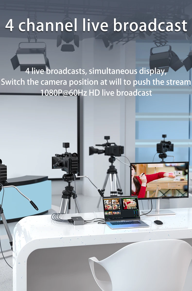 1. Поддержка четырехканального одновременного сбора: Одновременная прямая трансляция, взаимодействие и одновременное отображение
