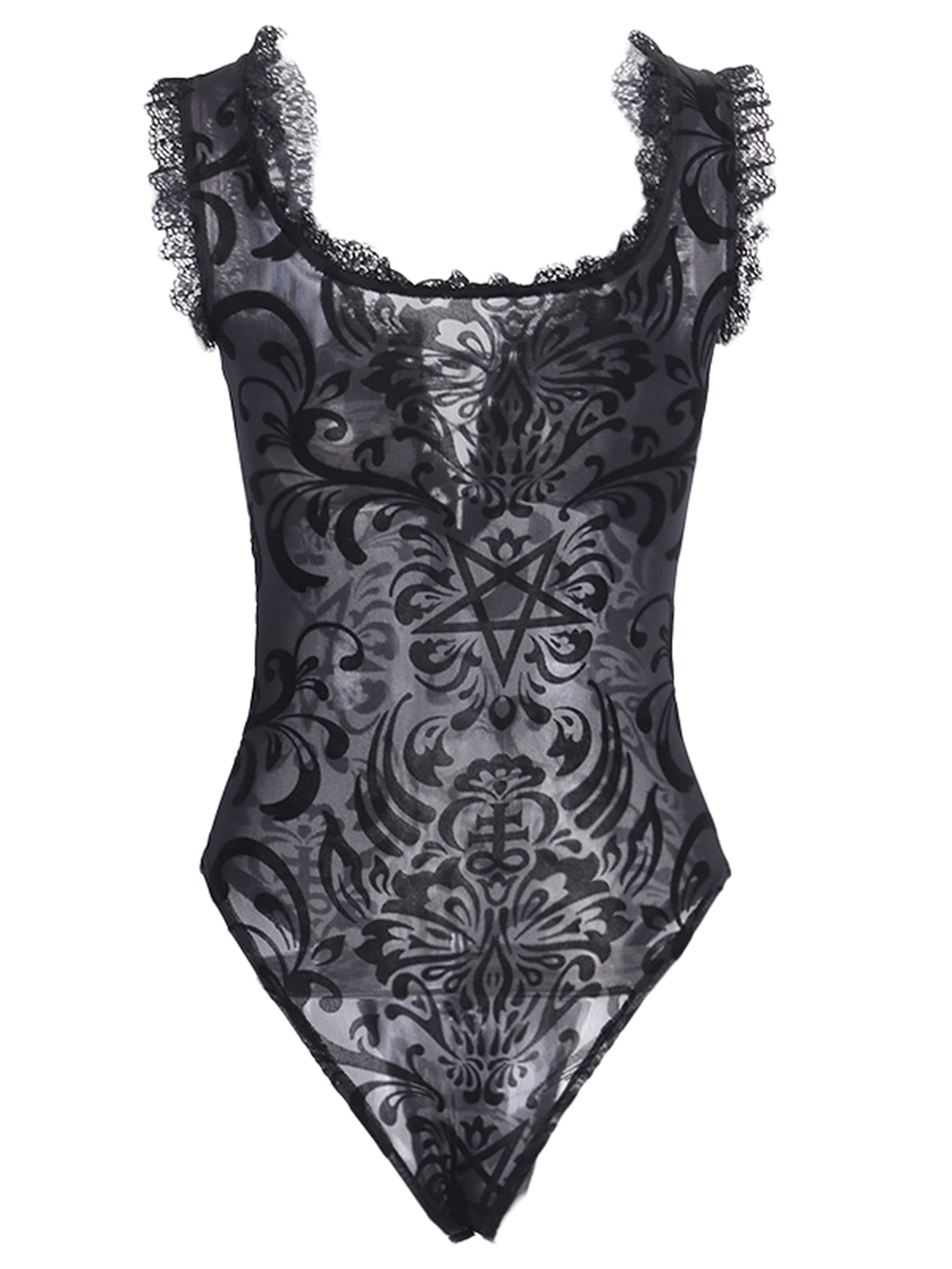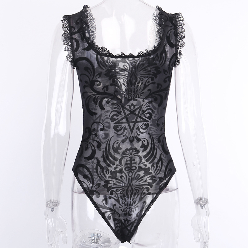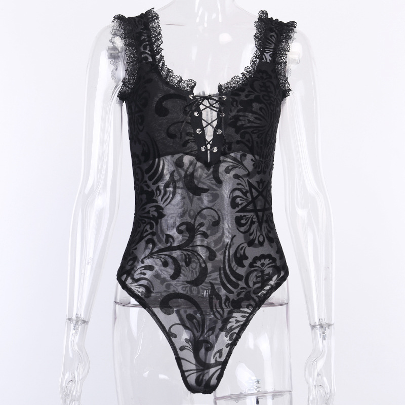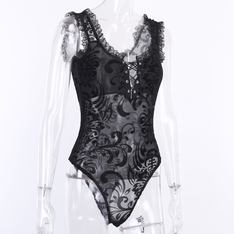 Женский сексуальный сетчатый комбинезон для взрослых, прозрачный комбинезон без рукавов с v-образным вырезом и кружевной отделкой, комбинезон на шнуровке, чувственное сексуальное женское белье, боди для женщин