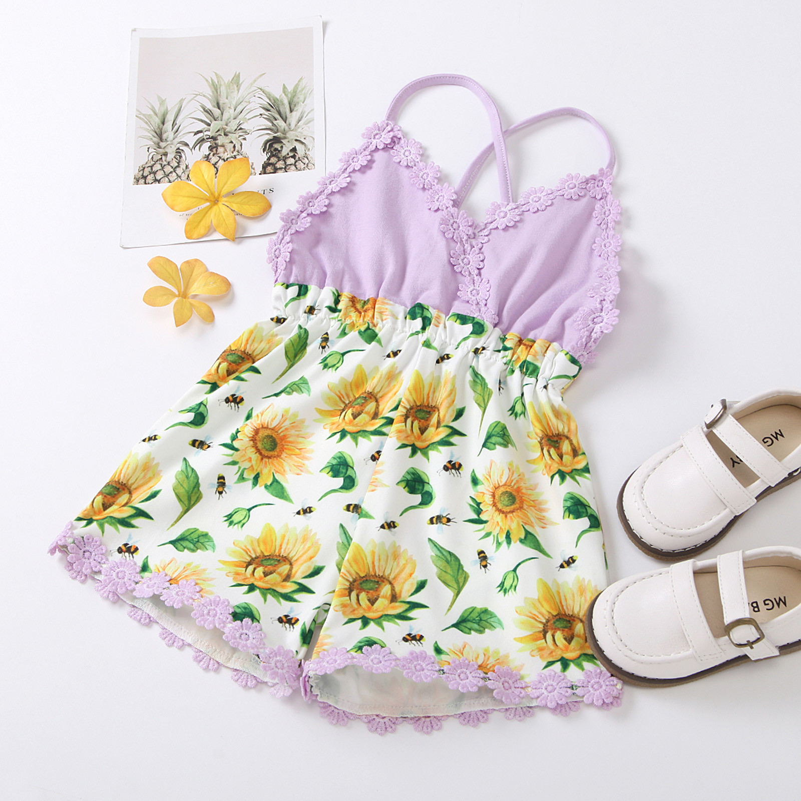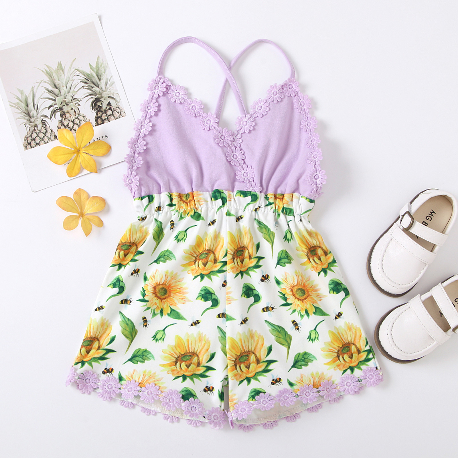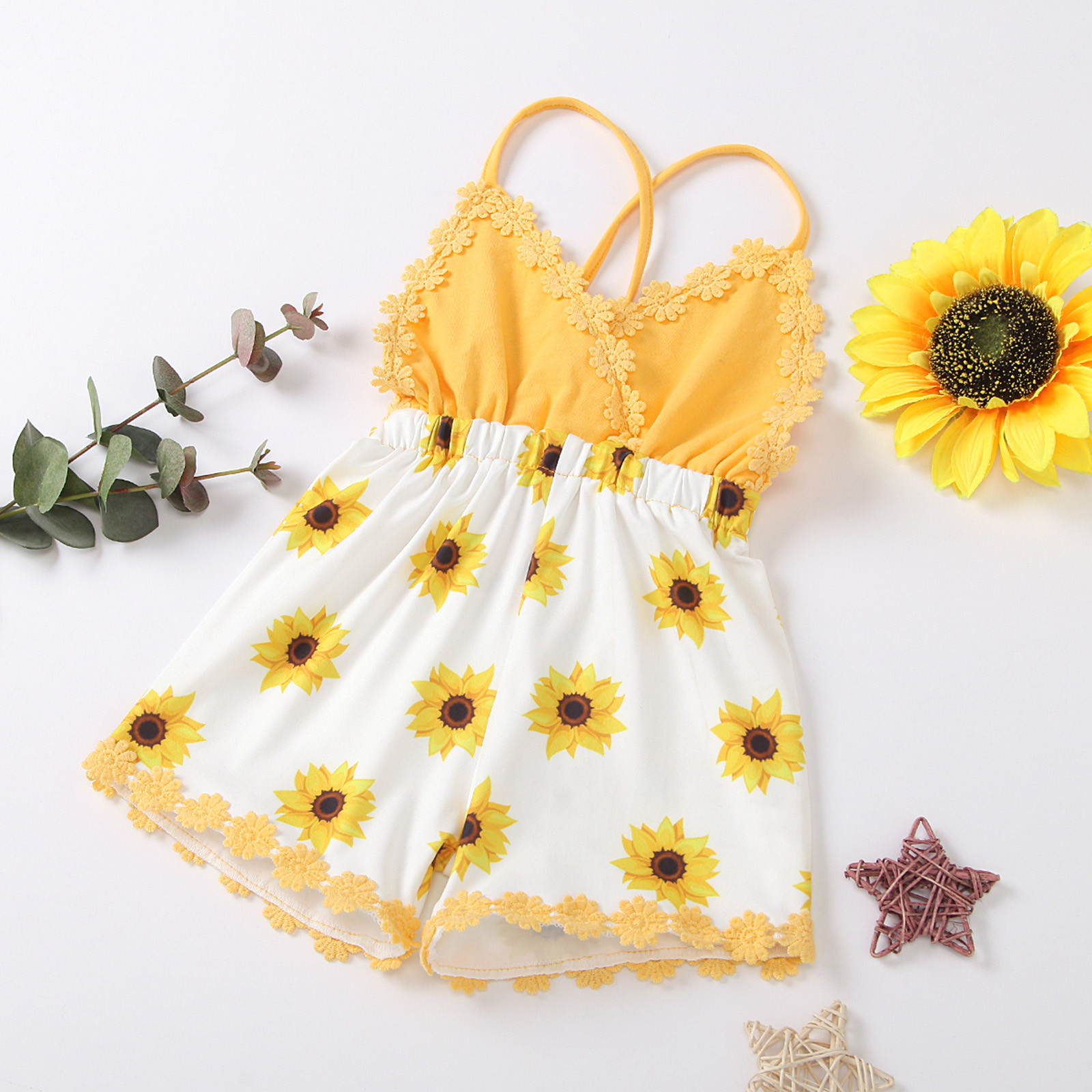 Комбинезон с оборками и подсолнухами для маленьких девочек