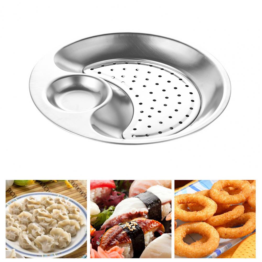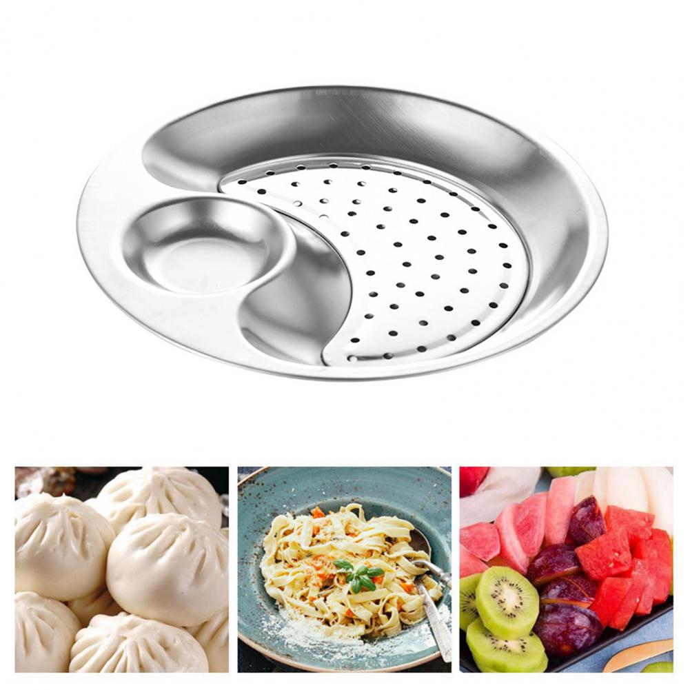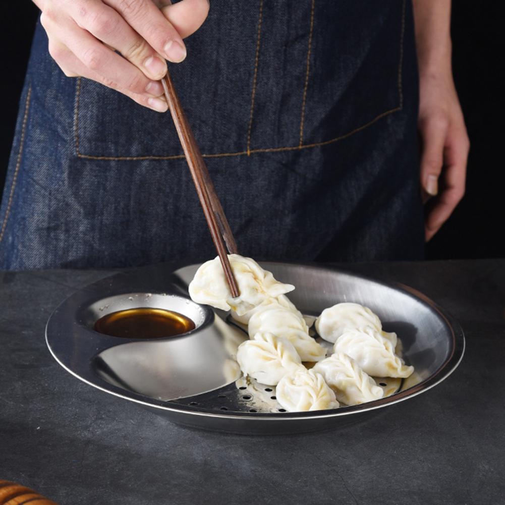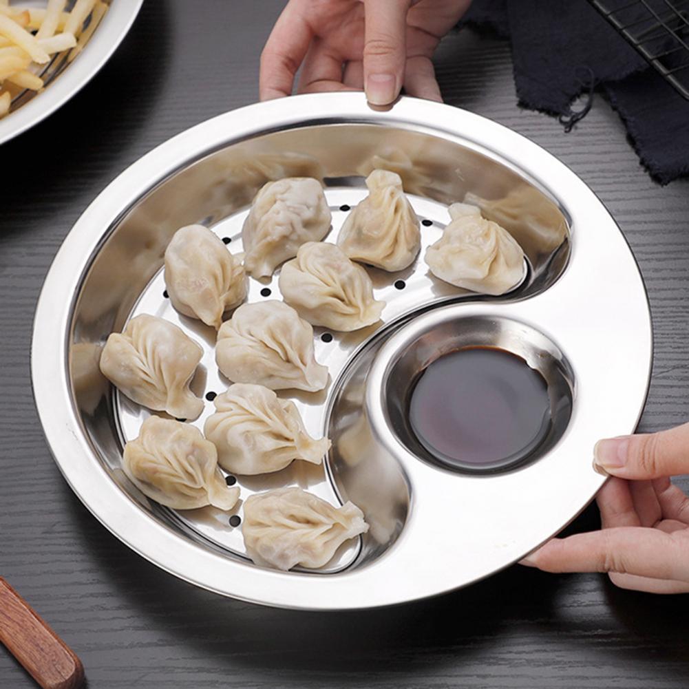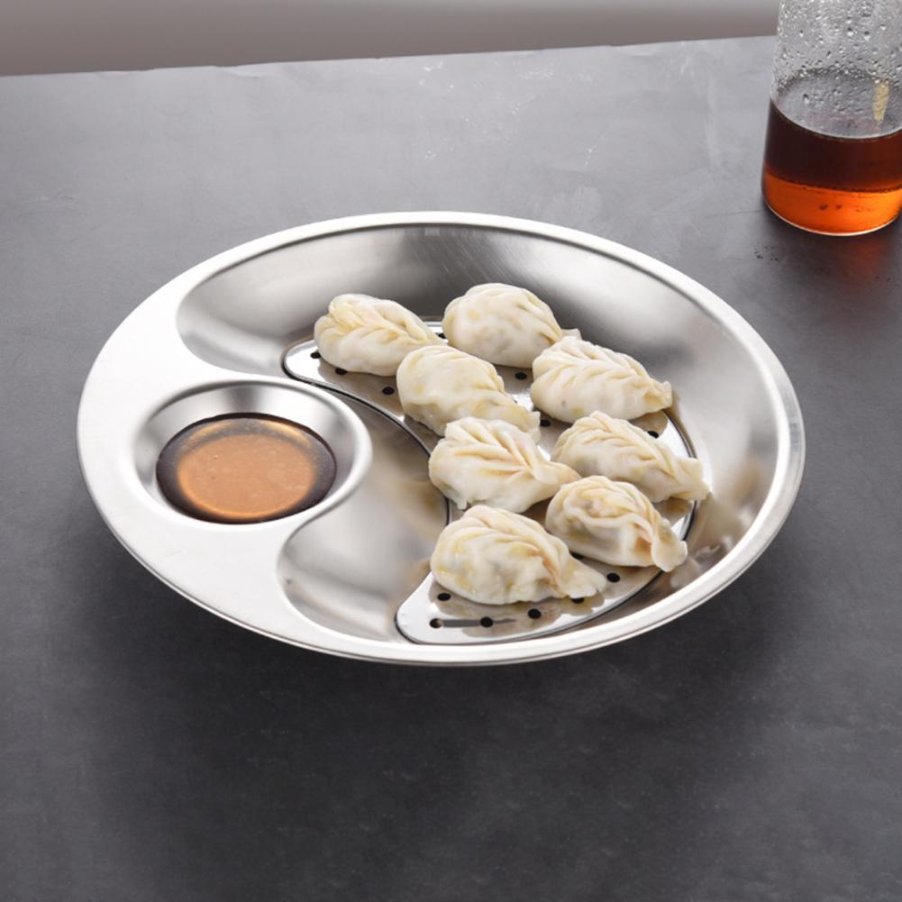 Пищевой материал из нержавеющей стали, двухслойный дизайн, его можно использовать для изготовления пельменей, фруктовых тарелок, тарелки для закусок и некоторых окунающих соусов для еды.