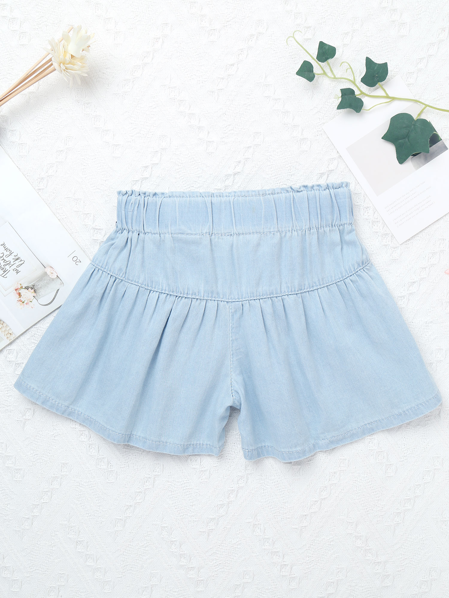 100-150 детские летние модные повседневные однотонные джинсы для девочек джинсовые шорты с цветными декоративными ремнями, детская одежда