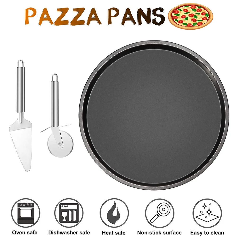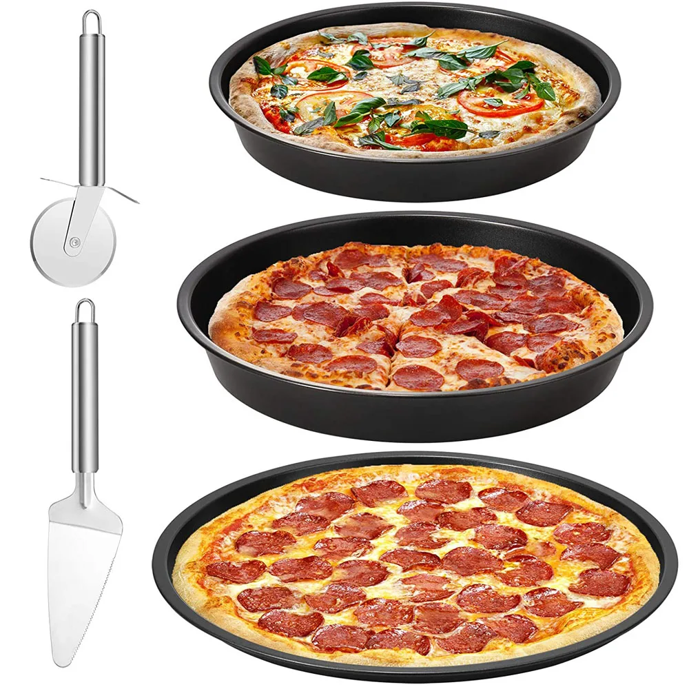 High-quality Materials : Pizza pan is made of carbon steel material, which has the characteristics of not easy to rust, good thermal conductivity, high temperature resistance, ruggedness and long service life. Non-stick Coating : Baking pan is protected with a non-stick coating to ensure that your pizza is easily released from the pan. The non-stick coating also ensures that your pizza plate is very easy to clean. 3 Perfect Sizes : These pizza crisper pans come with 3 different sizes, 6 inch, 8 inch and 10 inch, you can choose the pan size according to your pizza size, practical and convenient to use in daily life Versatile Applications : These kitchen pizza pans are good for baking pastry, pizza, cake, bacon, sandwiches, sausage, patties, steak and more foods, enable you to have a taste of these delicious food easily and conveniently, share tasty foods with friends and family at dinner.