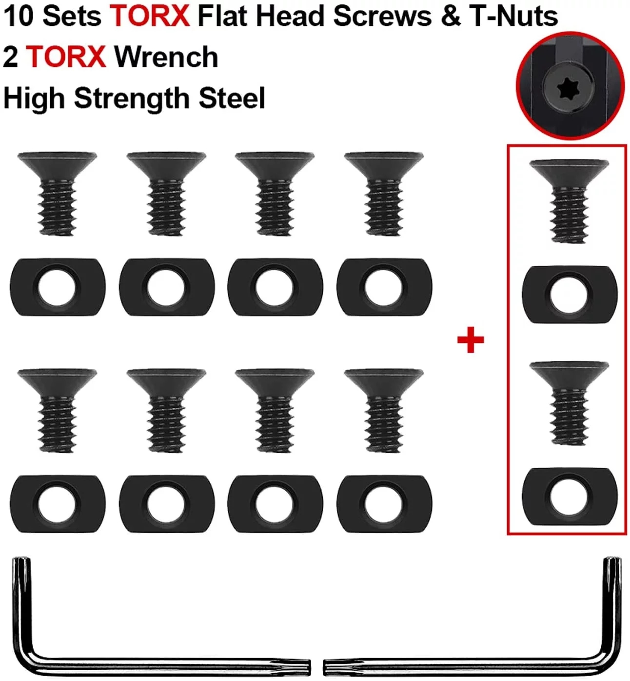 10 комплектов винтов TORX с плоской головкой и Т-образными гайками, 2 ключа TORX