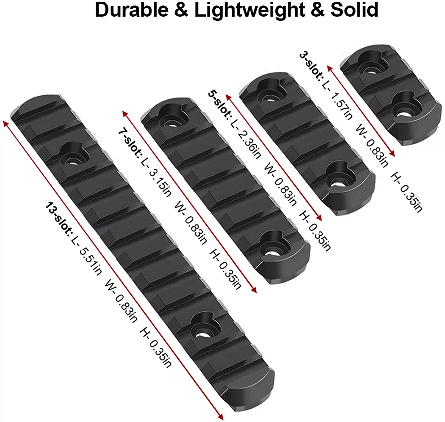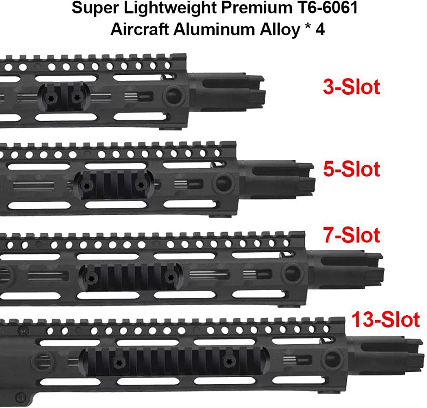 3-слотовые 5-слотовые 7-слотовые 13-слотовые направляющие Пикатинни дадут вам 4 варианта на выбор.