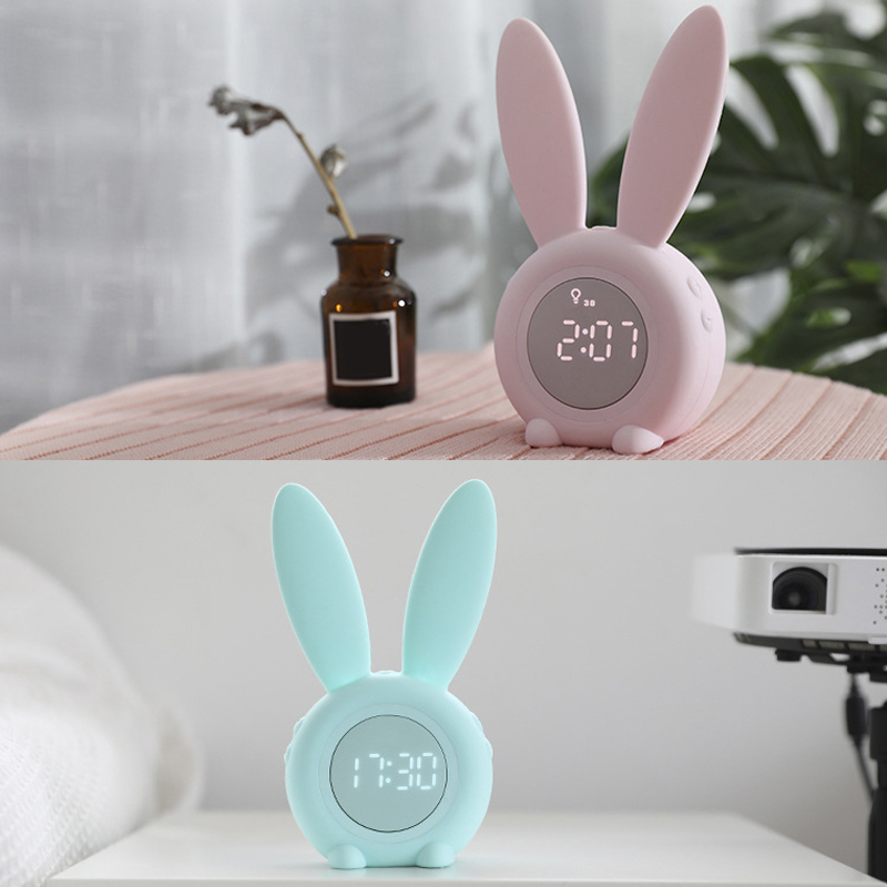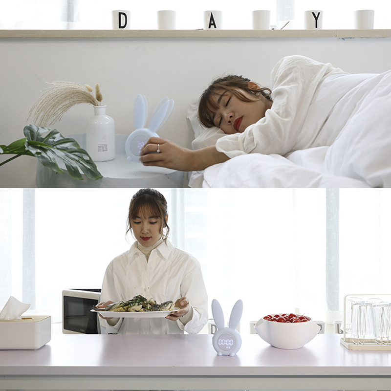 1. Часы кролика поддерживают два разных будильника в рабочие и выходные дни, они подходят для всей семьи. Он также имеет функцию повтора, вы можете контролировать его, встряхивая и звучая, он будет продолжать звонить в течение пяти минут.