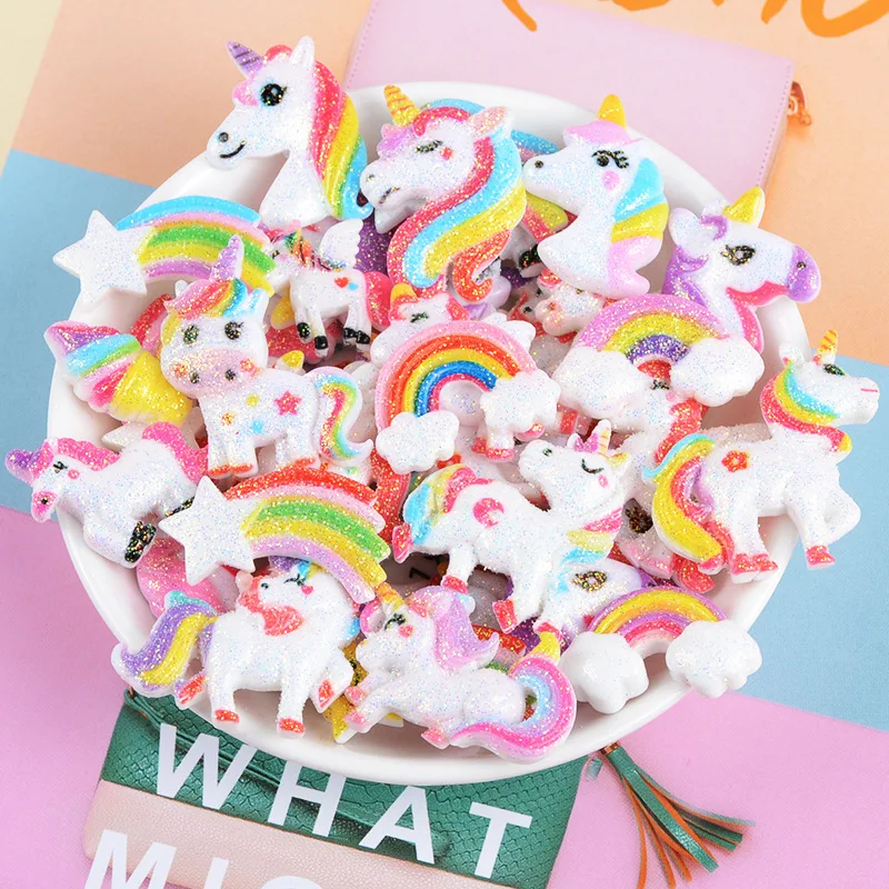 10 шт. Блестящий Единорог радужные резиновые банты для волос аксессуары DIY Скрапбукинг для детей декор для детского душа Свадебный декор для дня рождения