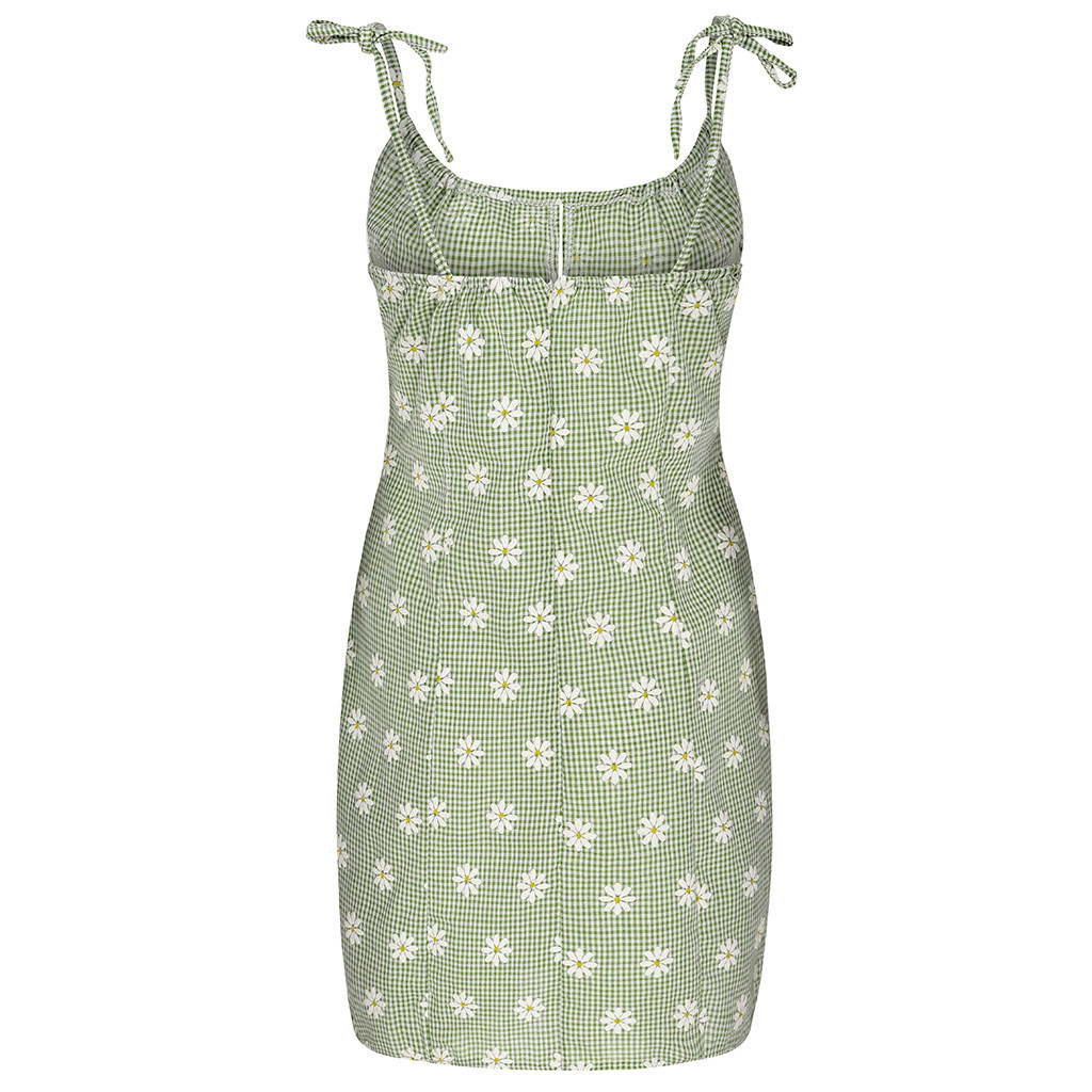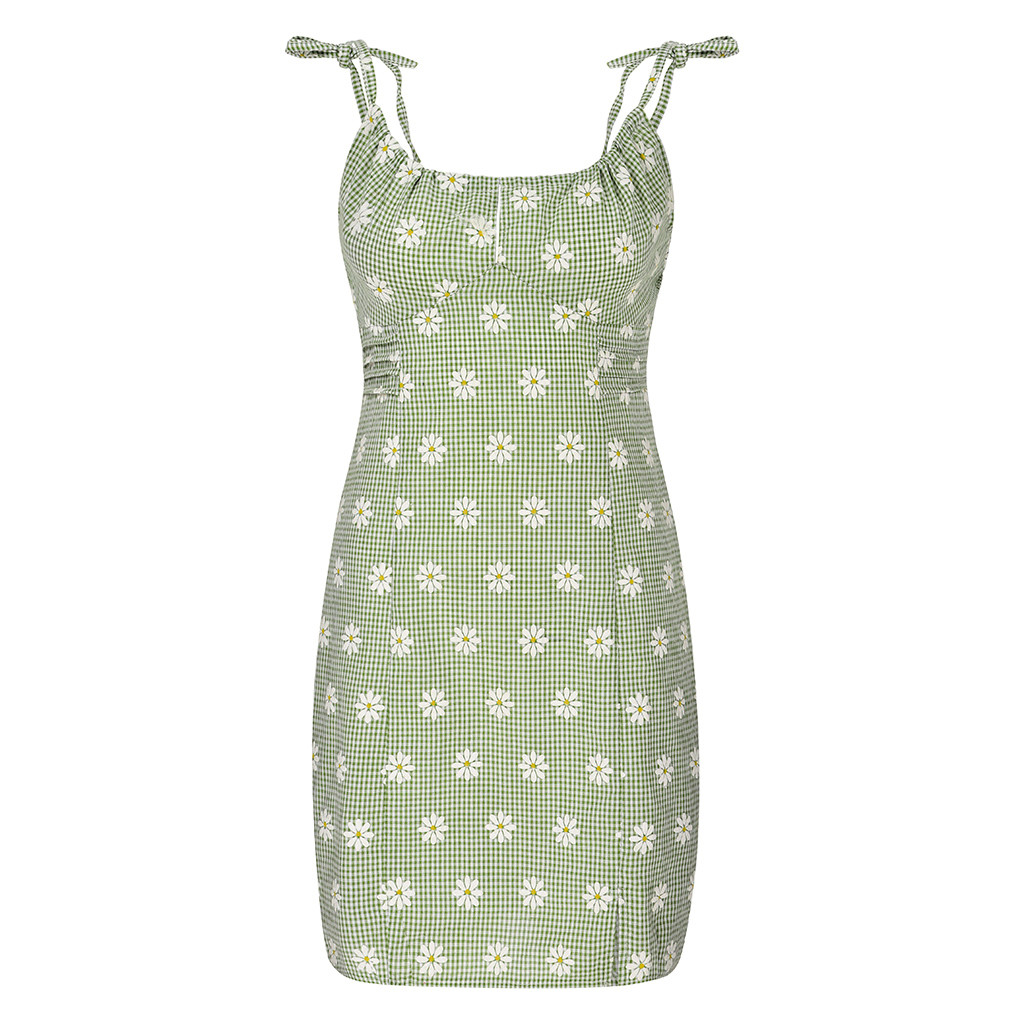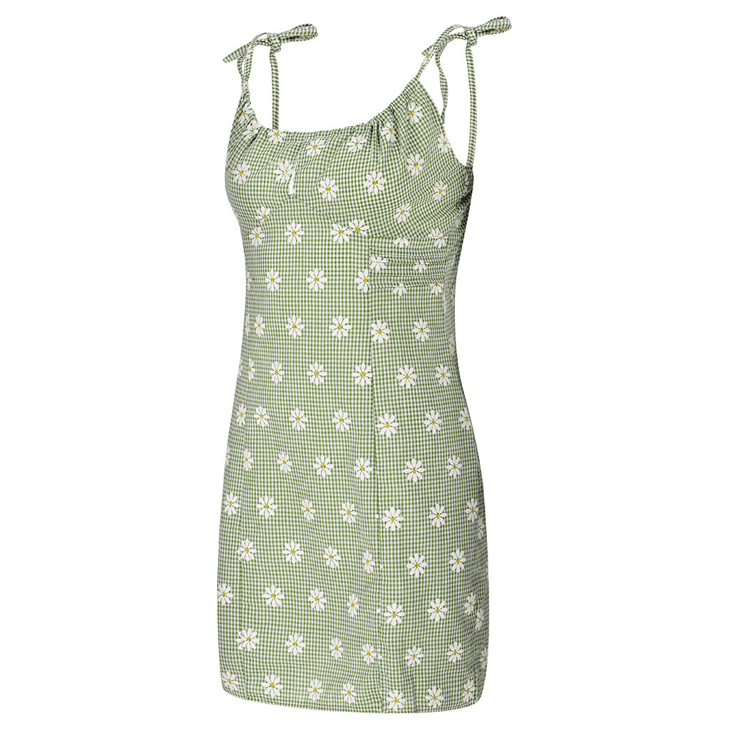 Женское облегающее мини-платье на бретелях с цветочным принтом и круглым вырезом