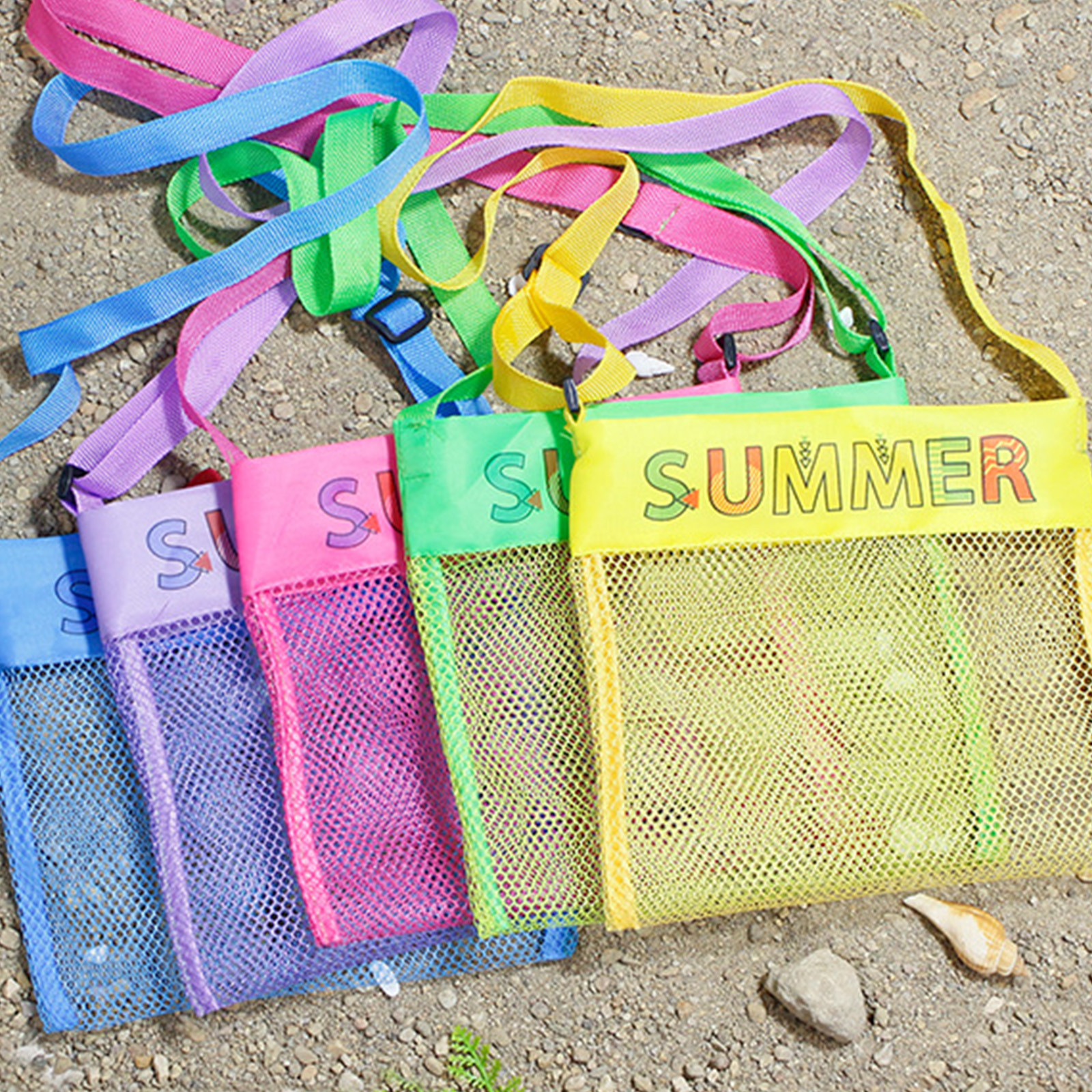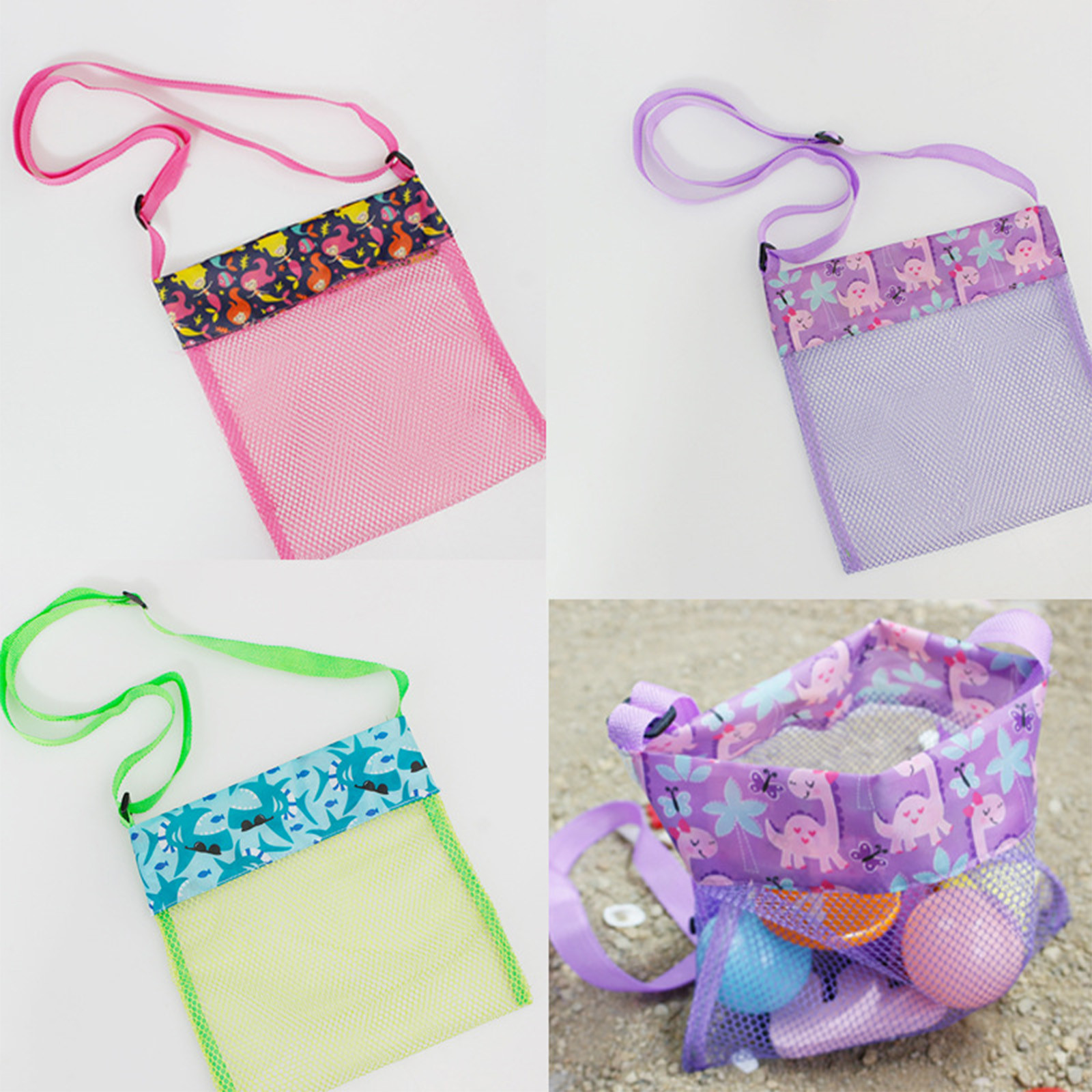 Цветная детская пляжная сумка, игрушечный сетчатый мешок для хранения, маленькая сумка через плечо