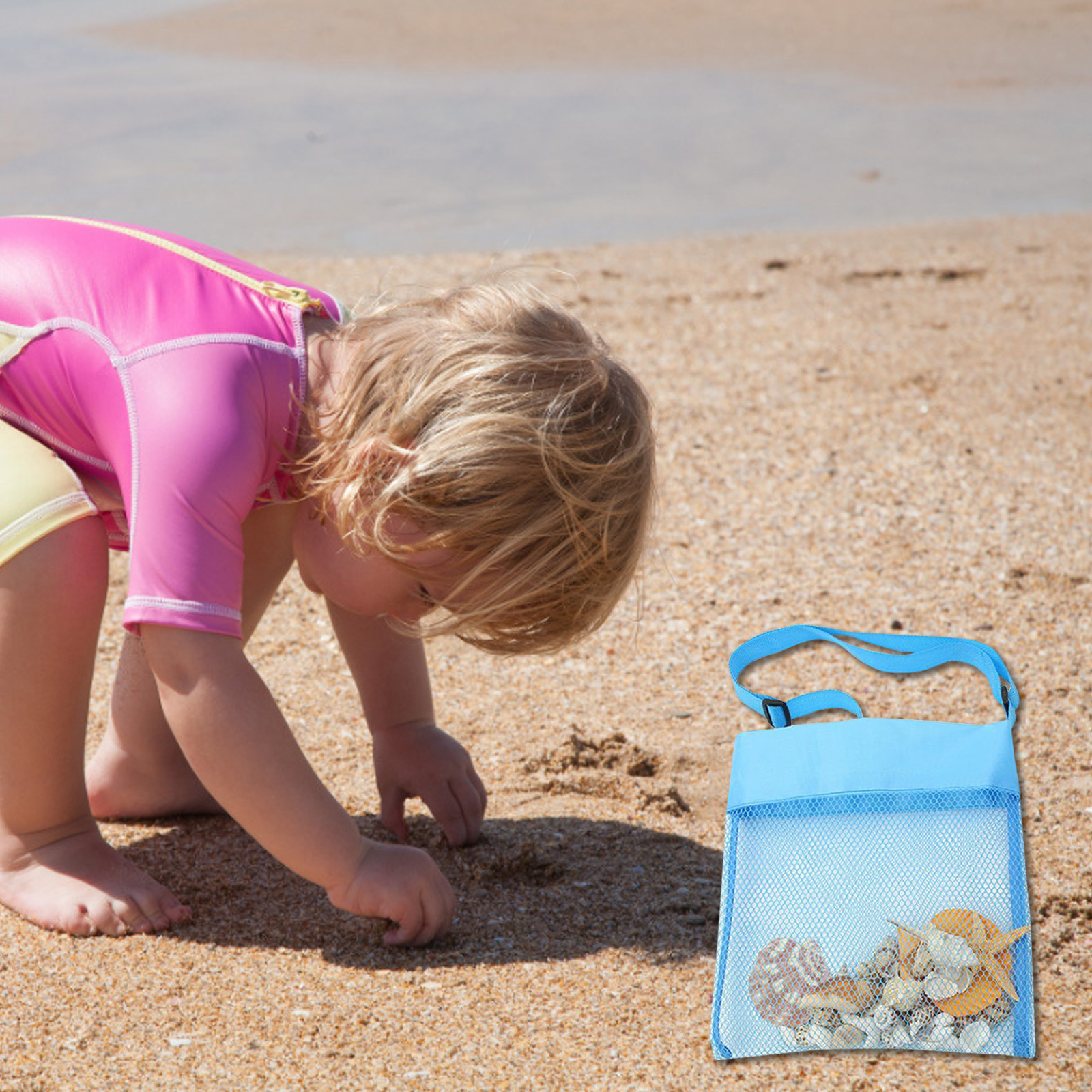[Подходит для детей всех возрастов] на поясе пляжная сумка есть кнопка, которая может регулировать длину. Не нужно беспокоиться о том, что ваш ребенок падает на буксируемую сумку во время бега. Детям нравится охотиться за сокровищами на пляже. Просто положите пляжную лопату в сетчатый мешок и начните охоту, чтобы найти красивый жемчуг и ракушки!