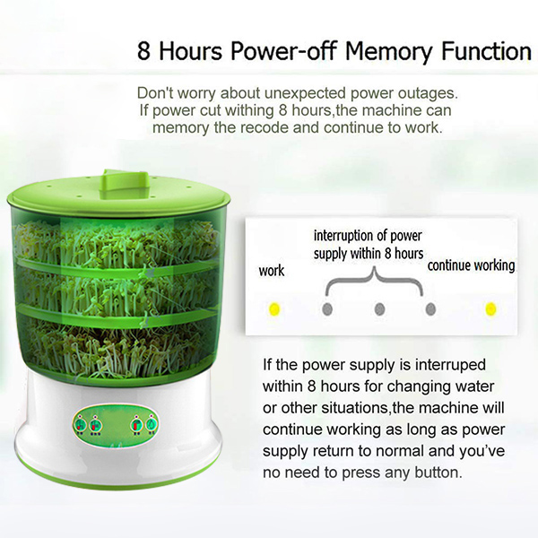 4. 360 градусов спринклер, чтобы избежать неравномерного проращивания фасоли. Экономьте электричество.