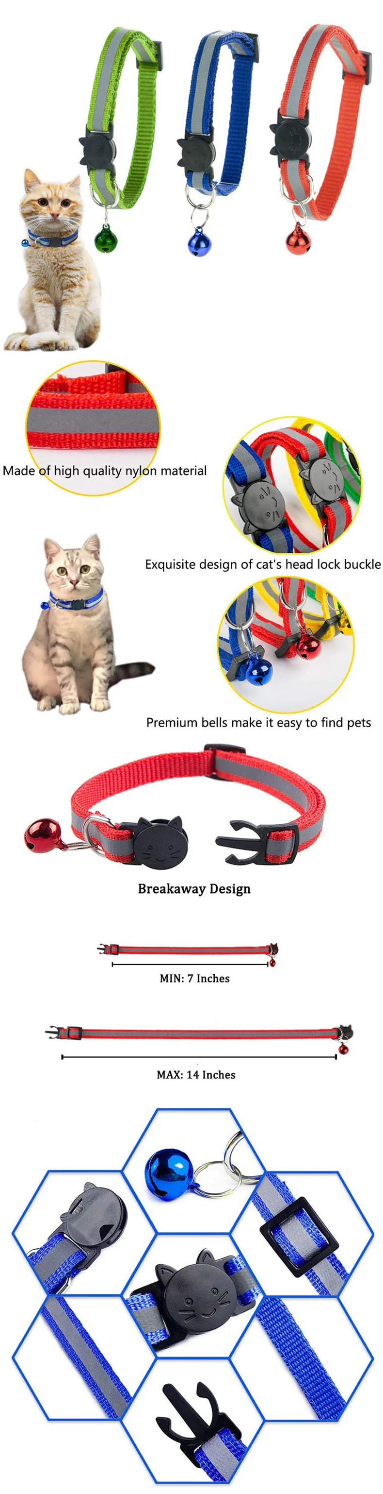 Светоотражающий ошейник с колокольчиком, регулируемые нейлоновые пряжки, модный ошейник для домашних животных, однотонный и безопасный ошейник для кошек, ошейник для домашних животных