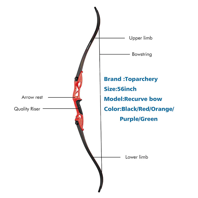 Total bow length: 56", bow riser length: 17", bow limb length: 53", Max draw length: 30". 30" Aluminum / Carbon Arrows are recommended.