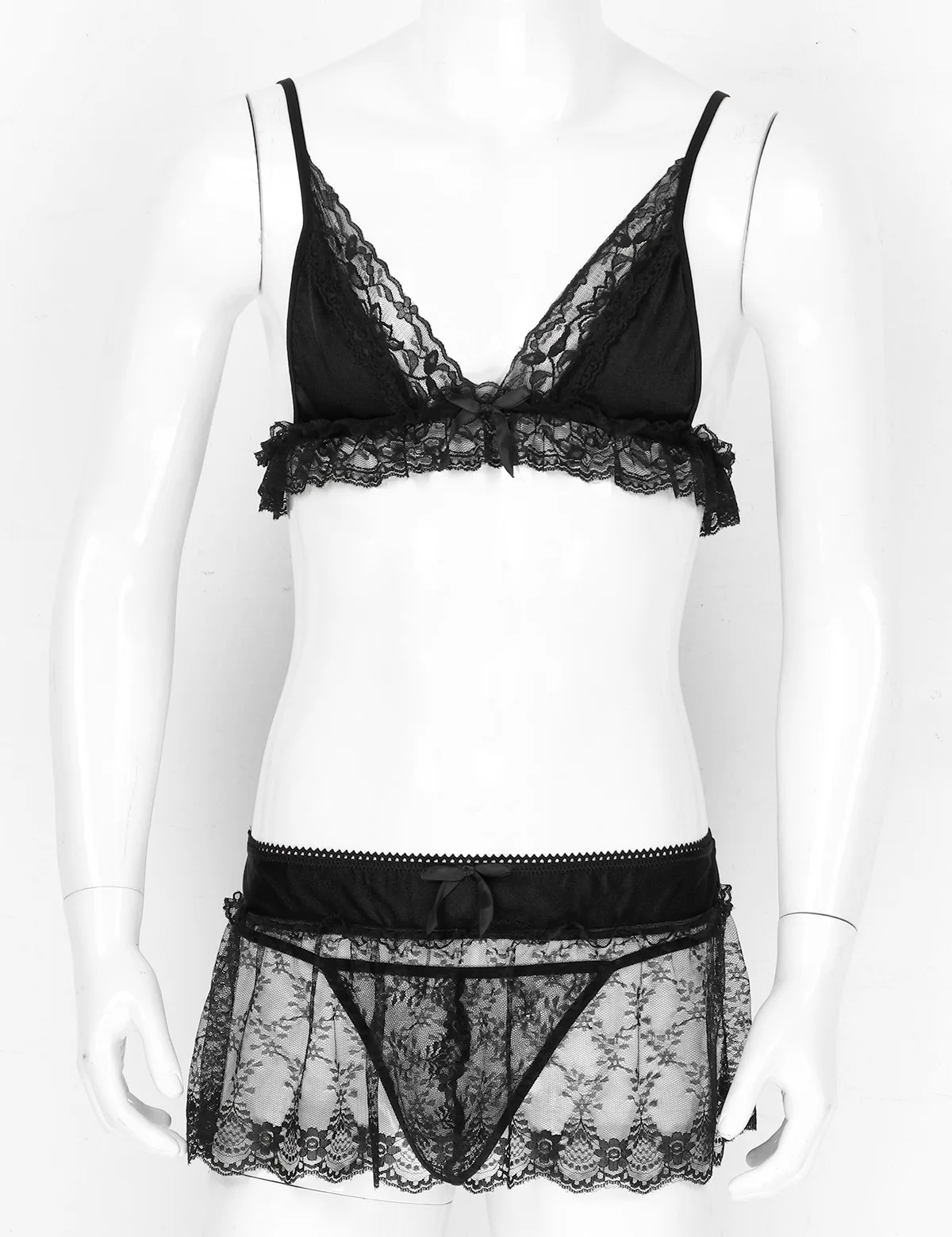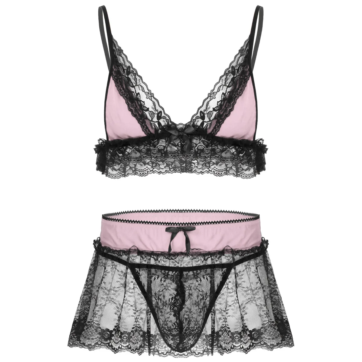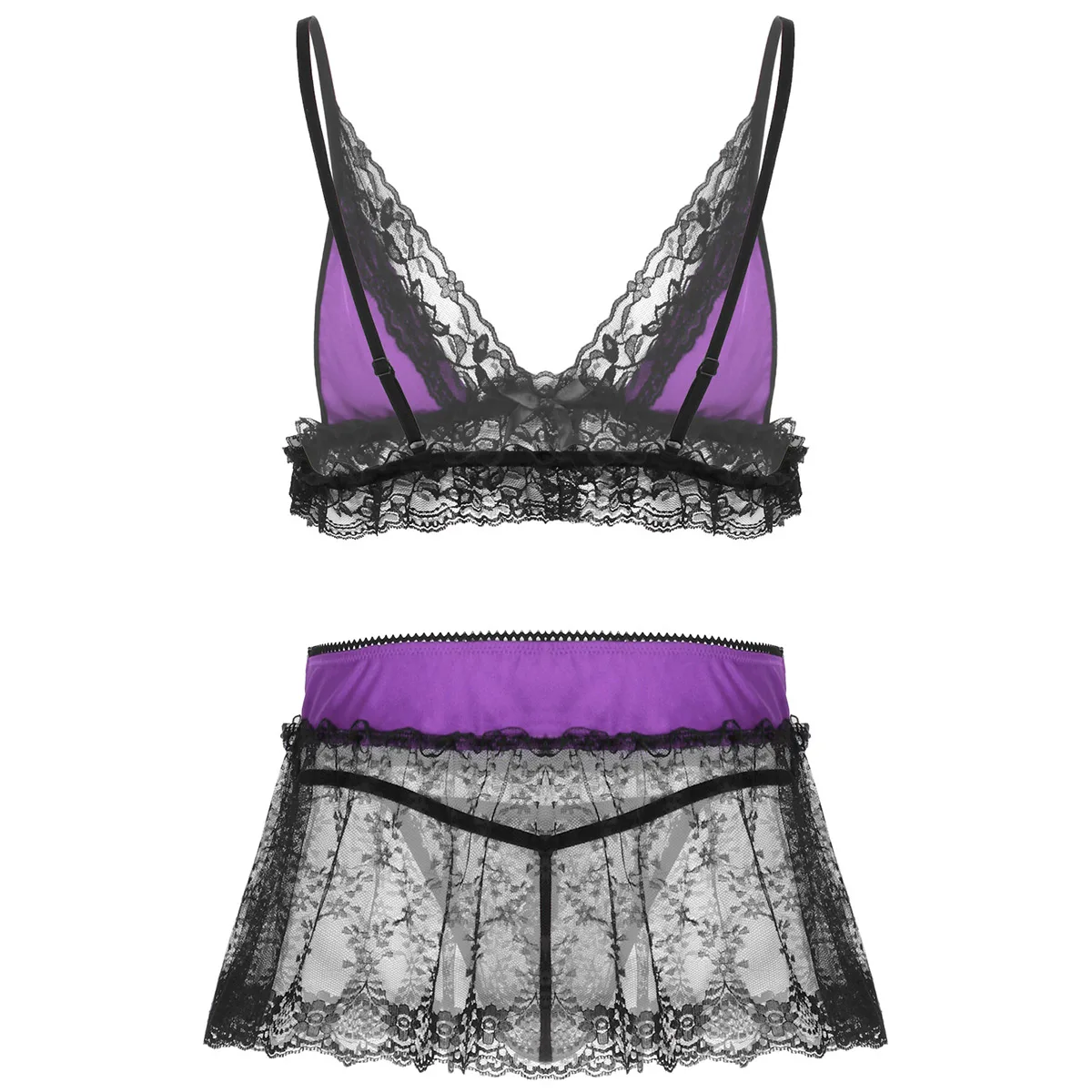 Мужское атласное нижнее белье, костюм, одежда для сна, прозрачная сетка, пэчворк, регулируемый бюстгальтер на тонких бретелях, топы с трусиками-стрингами.