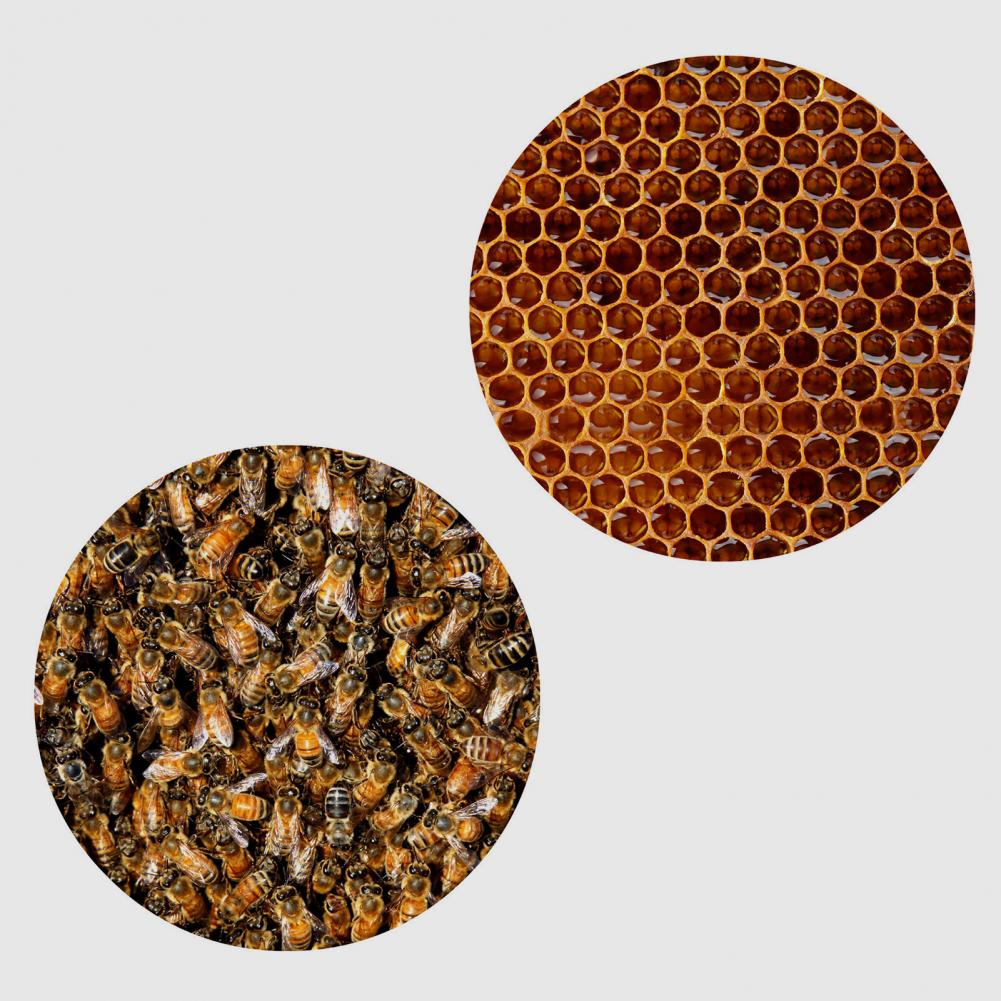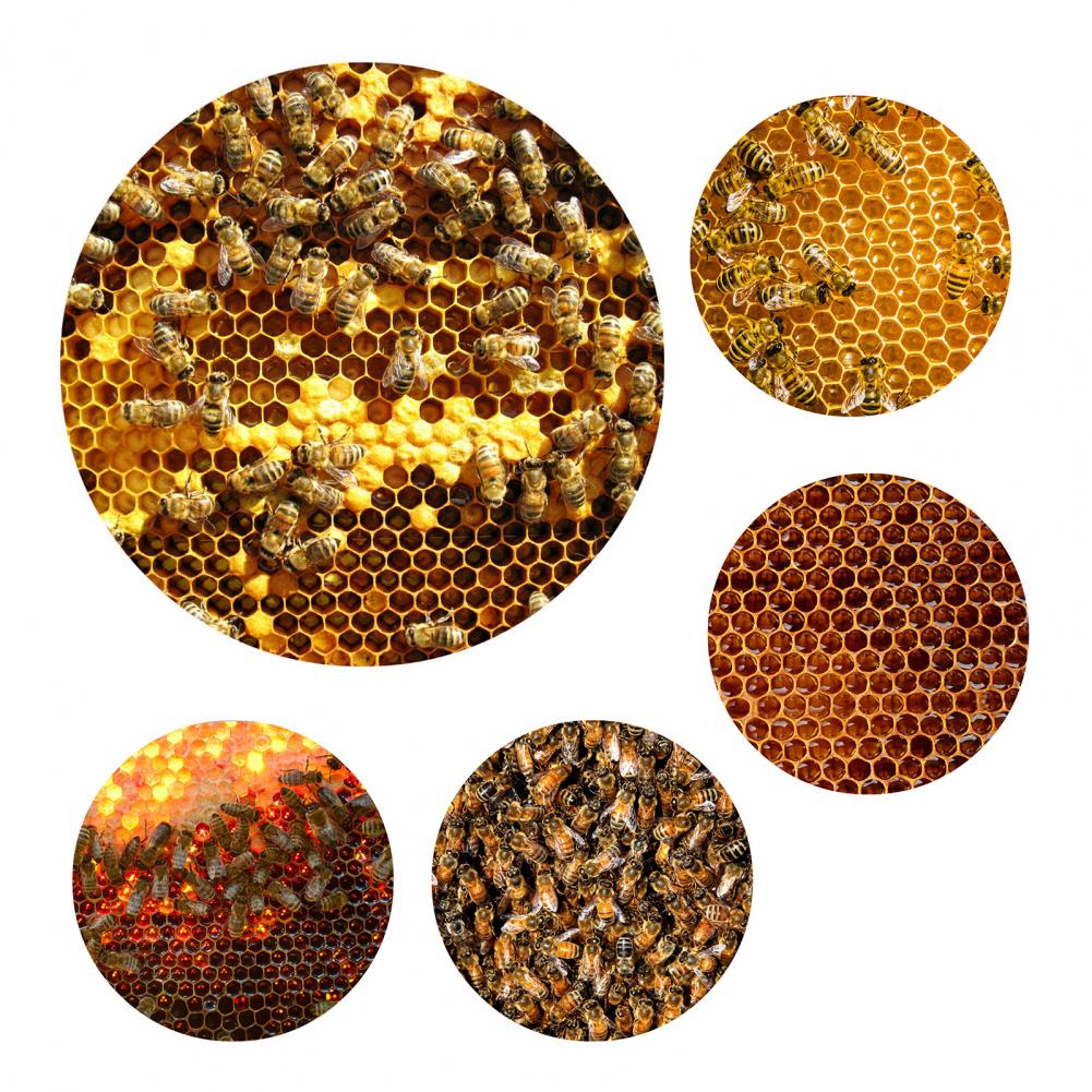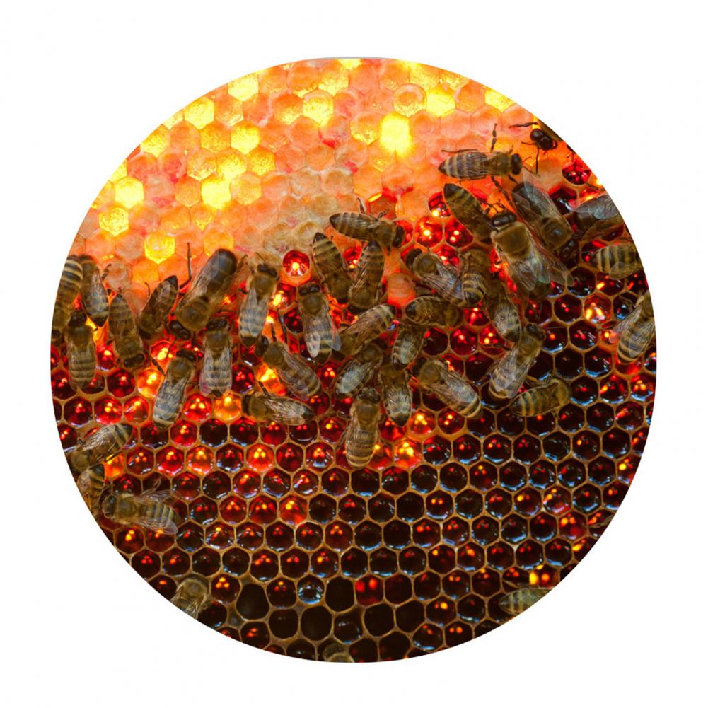 Этот продукт уникален и деликатен с изображением пчелы и сот на нем, который является ярким и бесцветным.