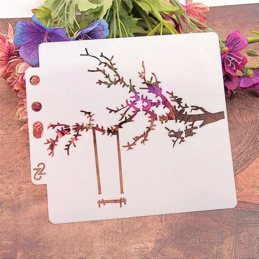 14,1*13 трафареты для скрапбукинга с рисунком дерева спрей Пластиковая форма Щит DIY торт полые украшения Печать Кружева линейка Пасха