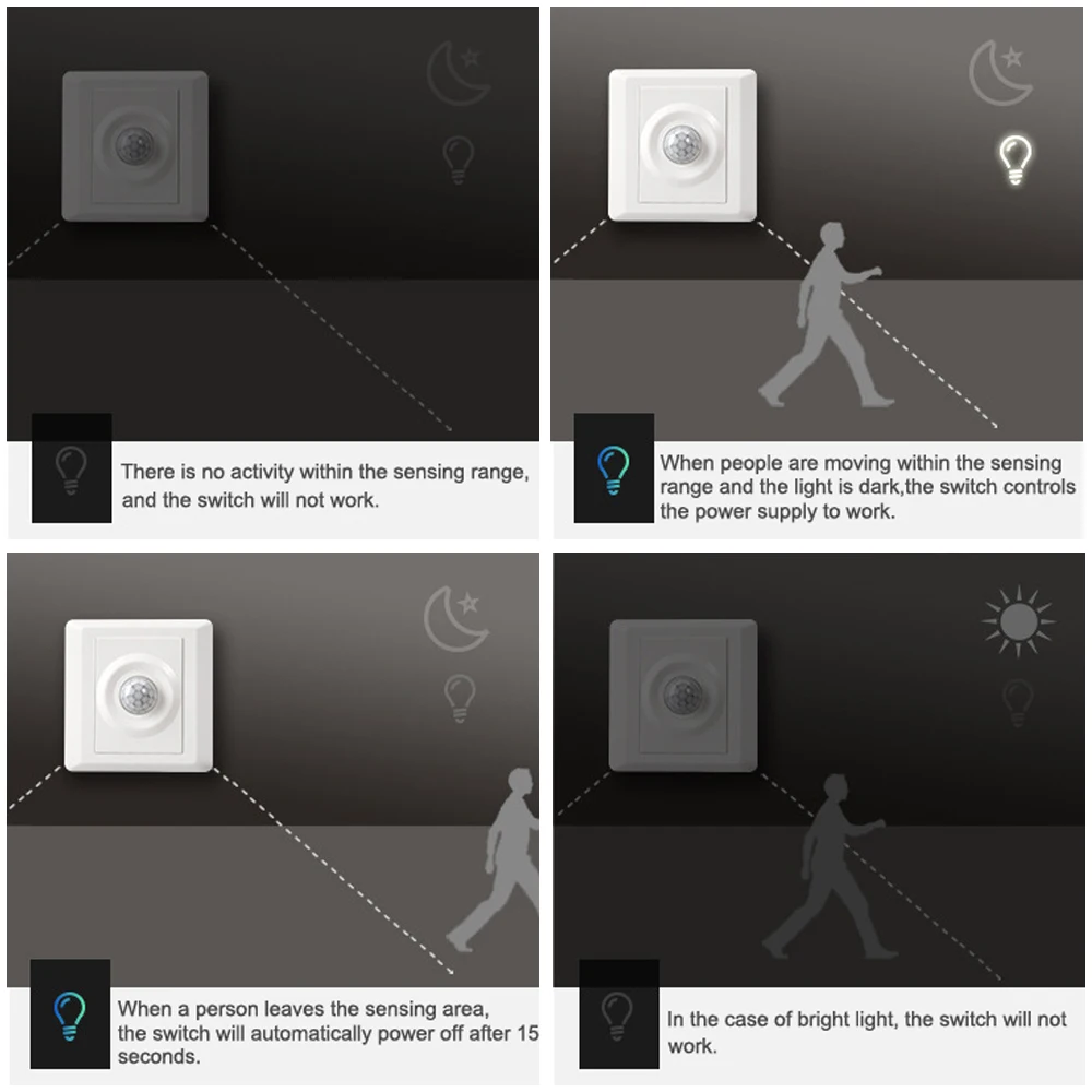 AC110-220V белый инфракрасный датчик движения из PIR светильник переключатель заполняемость режимы движения автоматическое открытие активированный настенный выключатель нейтральный провод требуется один полюс для CFL/светодиодный/Лампа накаливания в комплекте
