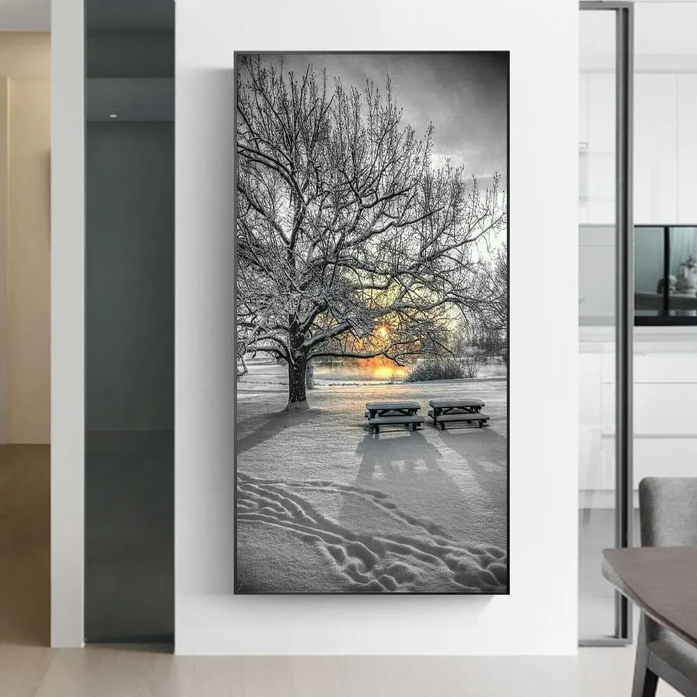 Nodic стиль Декорации для комнаты картины снежное уличное дерево со стулом настенный художественный холст печать картина для гостиной украшение стены