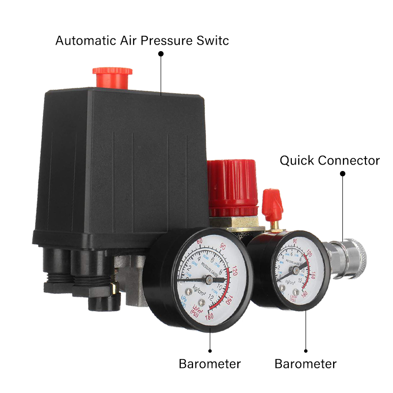 Максимальное напряжение: 240 В Максимальная номинальная мощность усилителя: 20 A Диапазон контроля переключателя давления: 95 ~ 120 PSI Регулировка регулятора давления: 30 ~ 120 PSI Диаметр наружной резьбы: Приблизительно 21 мм-1/2 "NPT (для воздушного компрессора) Запорные клапаны Диаметр резьбы: 13 мм-1/4 "NPT Размер (Д * Ш * В): 21x15x12,5 см Особенности: С 2 быстрыми соединителями. Автоматическое управление, автоматическая загрузка/разгрузка. Есть красная кнопка включения/выключения, удобная конструкция для использования. Давление ниже 90 фунтов на квадратный дюйм, включите компрессор. Давление над 120PSI, выключите компрессор. Посылка включает в себя: 1 x переключатель клапана давления воздушного компрессора с быстрым соединителем Примечания: 1. Ручное измерение, пожалуйста, учитывайте погрешность в 1-2 см, спасибо. 2. В связи с разной конфигурацией разных мониторов изображение не отображает фактический цвет товара. Мы гарантируем, что стиль такой же, как показано на фотографиях. Пожалуйста, поймите, спасибо!
