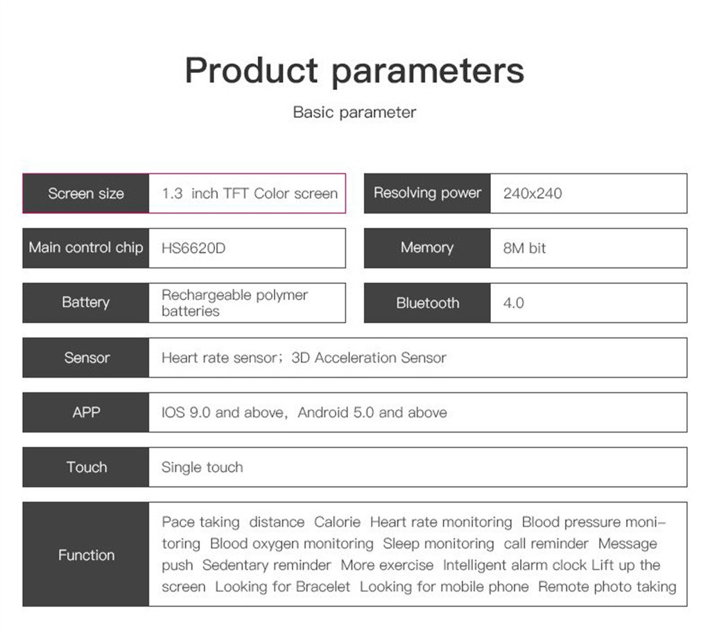 Поддержка сердечного ритма, крови Давление, мониторинг кислорода в крови, функция мониторинга сна, когда вы Засыпает, автоматически контролирует качество сна и Запись данных в приложении.
