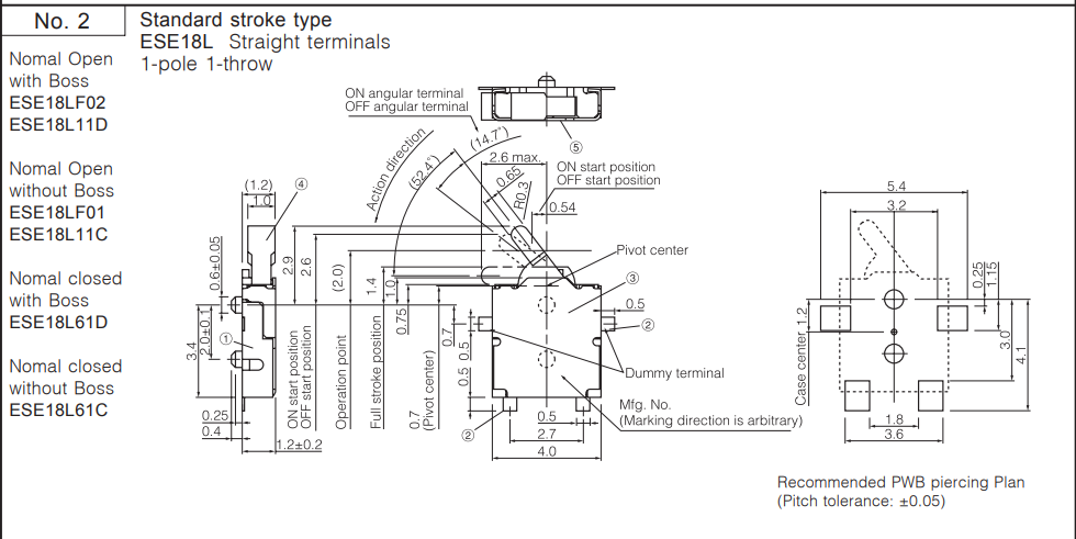 Япония Panasonic ese18lf02 микро-детектор обнаружения переключатель путешествия переустановка ограничения нажмите переключатель слева нажмите переключатель патч 4-контактный нормально разомкнутый контакт низ с фиксацией лента пакет с подробной информацией размер диаграммы