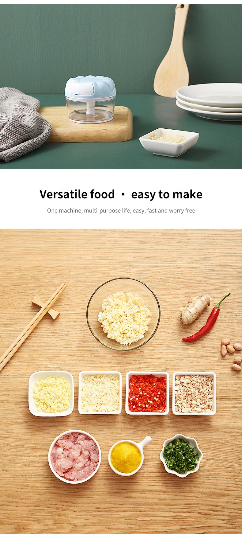 Потяните чеснок/луковая дробилка, пресс резак ручной пищевой резки процессор для фруктов, овощей, мяса кухонный инструмент мини измельчитель еды